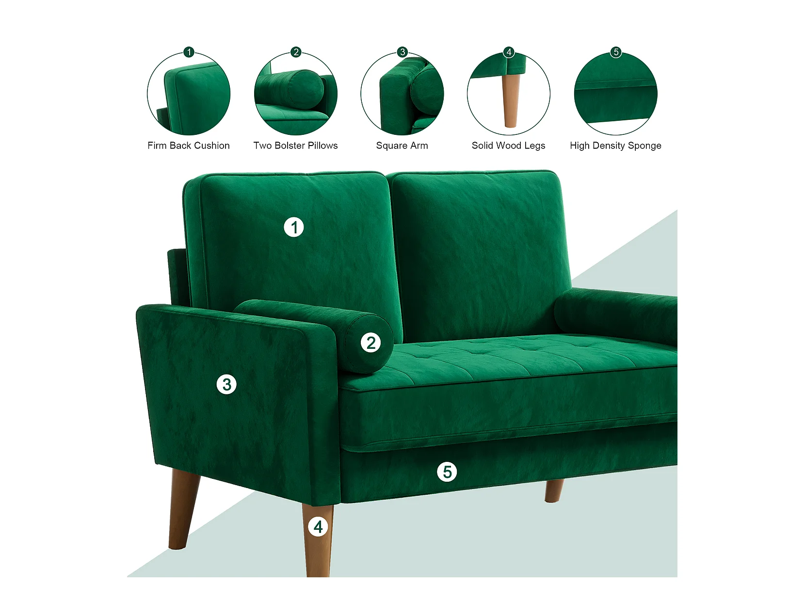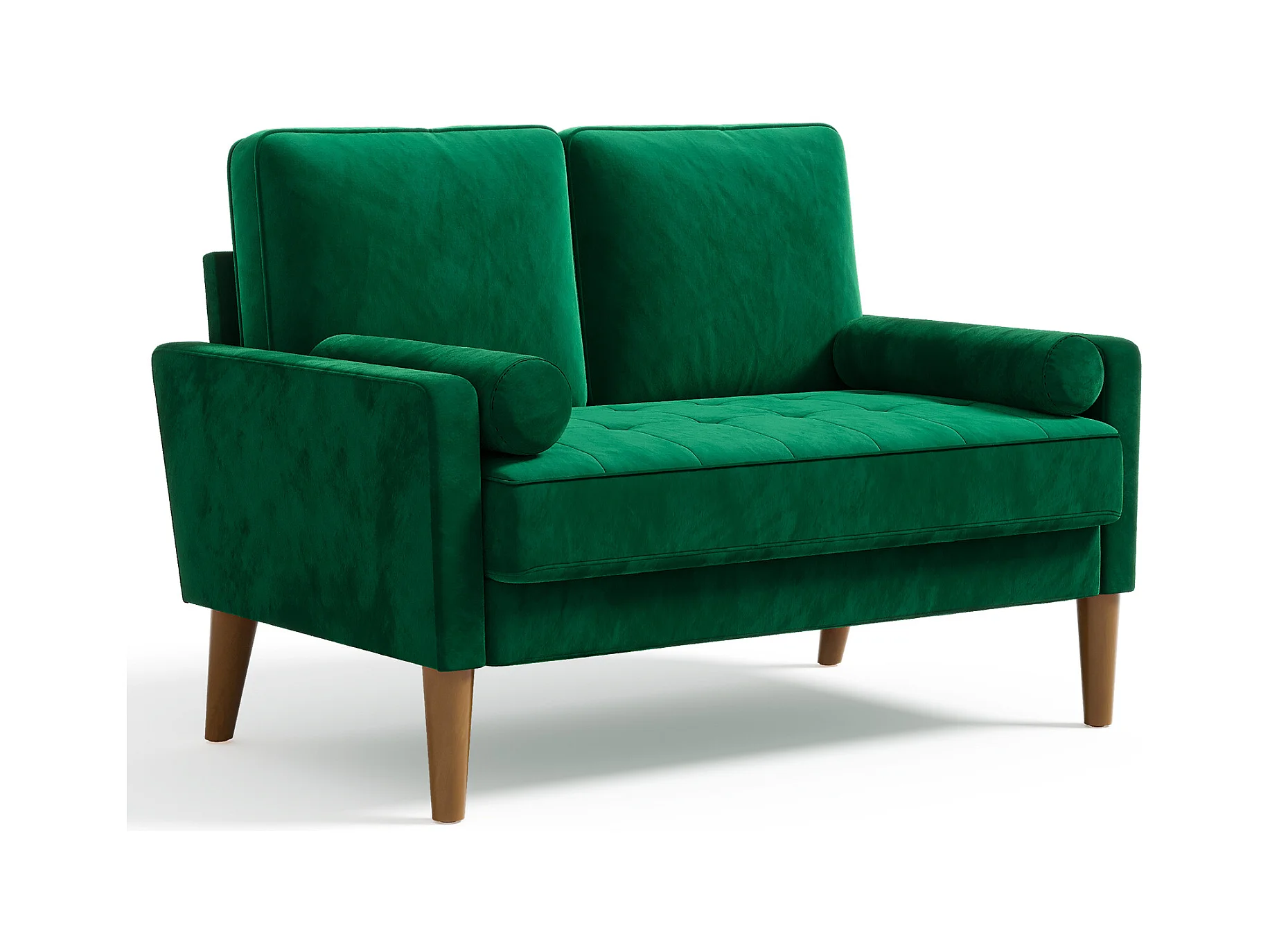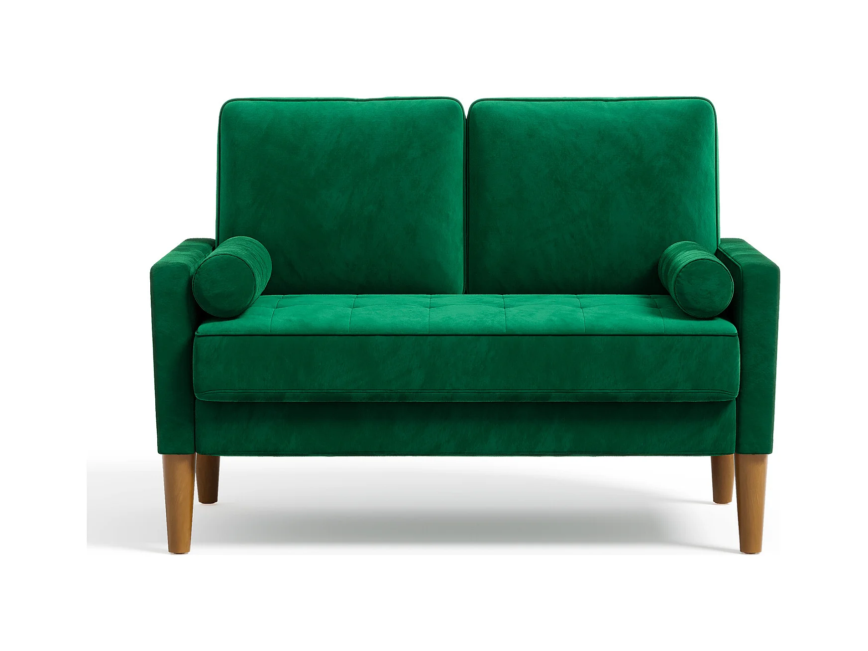 Canapé à 2 Places Scandinave,Mini Canapé à Bras Roulés en Velours Loveseat,Fauteuil Salon avec Accoudoirs,121x77x87cm - Vert