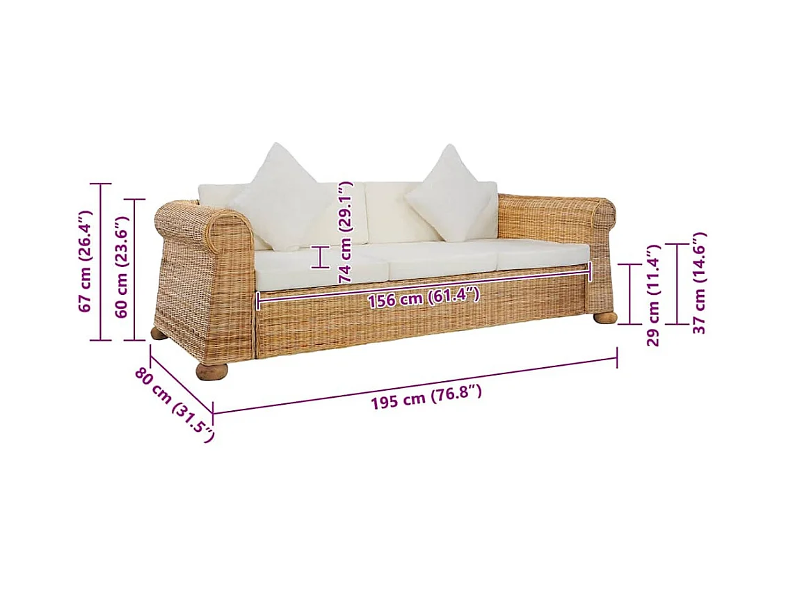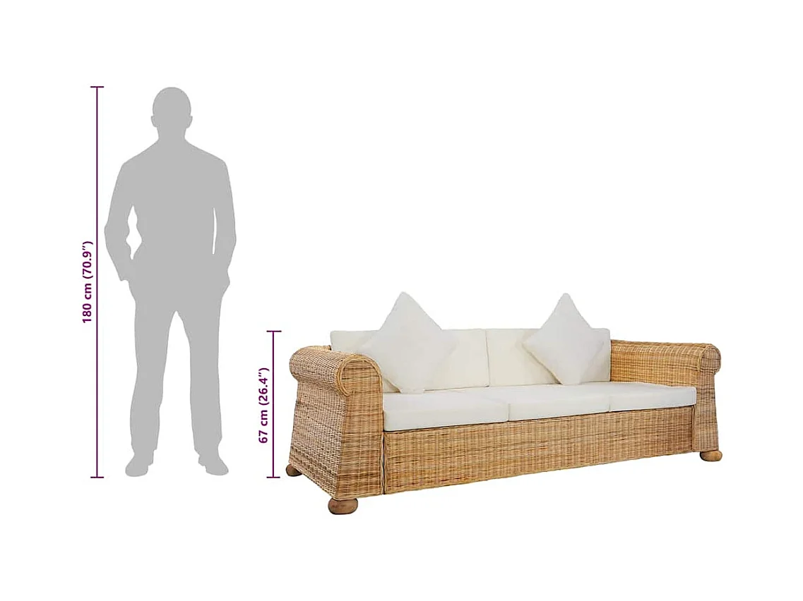 Canapé de jardin 3 places FORLI Rotin Naturel