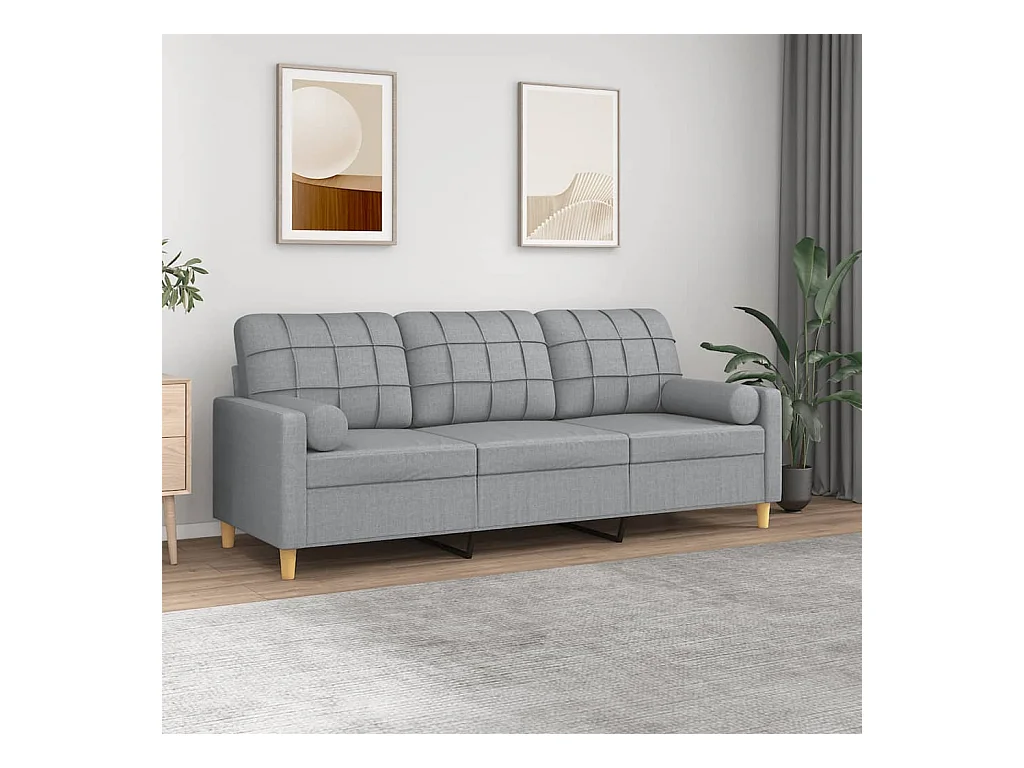 Canapé à 3 places avec oreillers gris clair 180 cm tissu OID7077