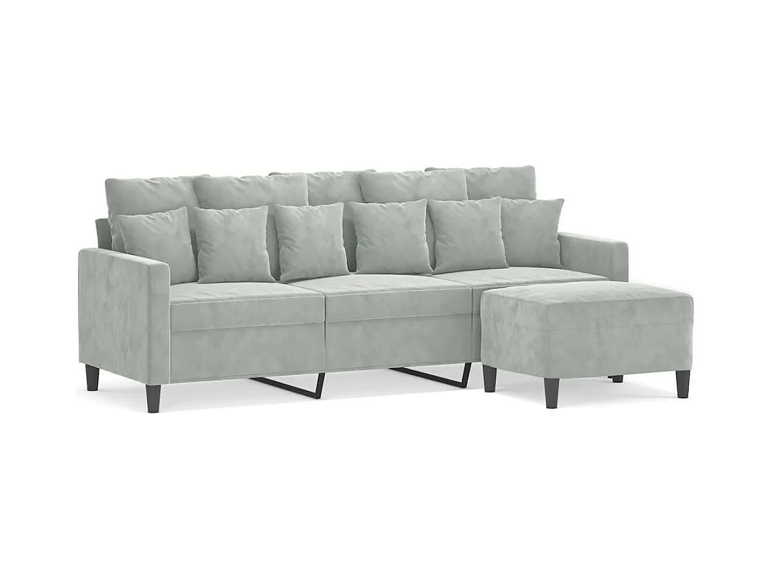 Canapé à 3 places avec repose-pieds Gris clair 180 cm Velours