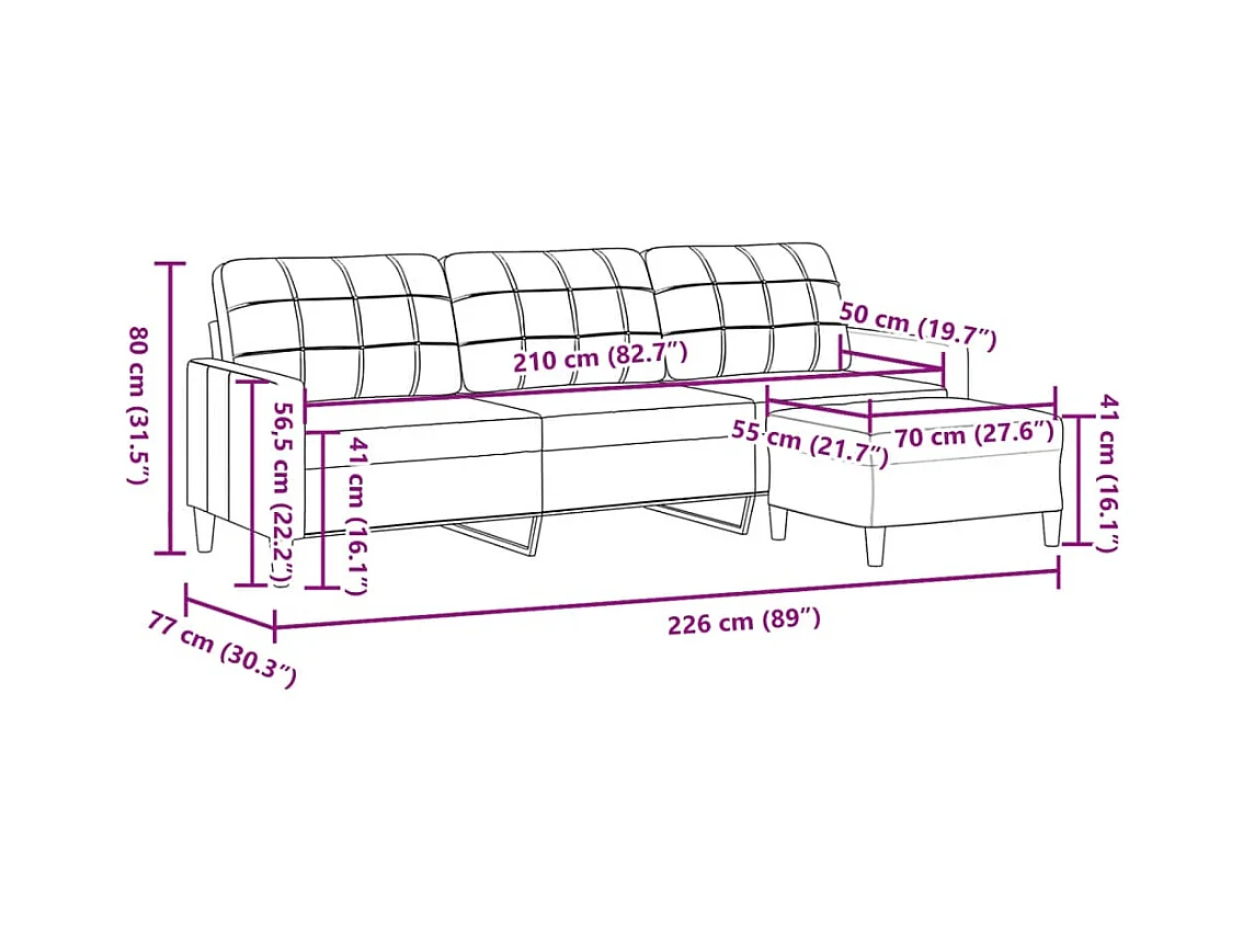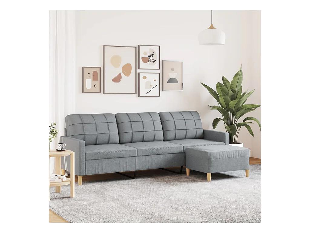 Canapé à 3 places avec repose-pieds Gris clair 210 cm Tissu