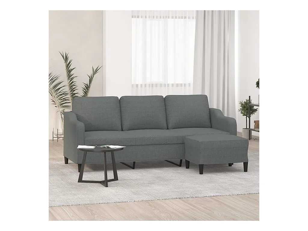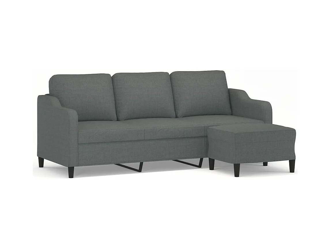 Canapé à 3 places avec repose-pieds Gris foncé 180 cm Tissu