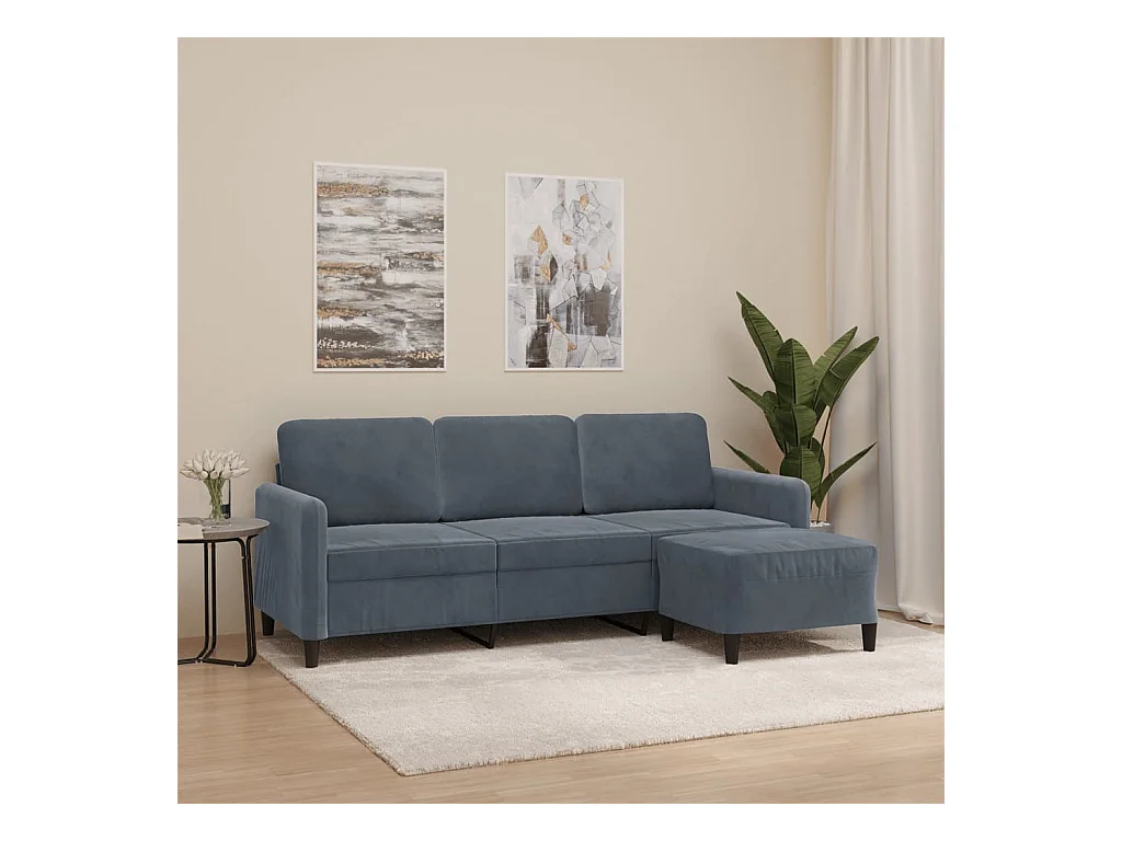 Canapé à 3 places avec repose-pieds Gris foncé 180 cm Velours