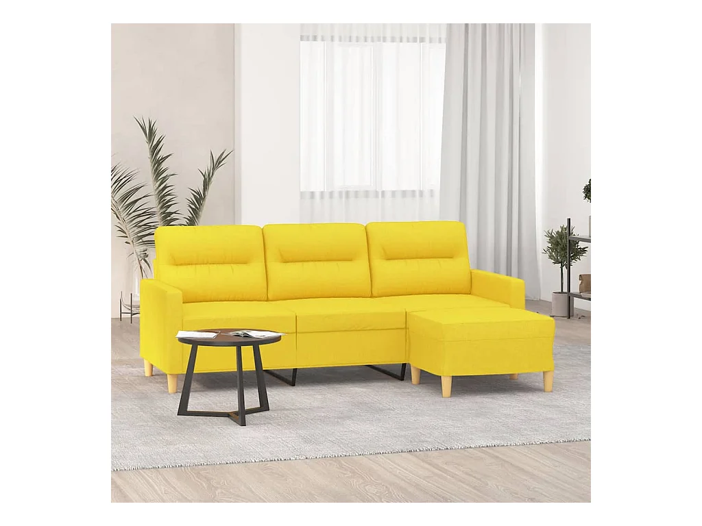 Canapé à 3 places avec repose-pieds Jaune clair 180 cm Tissu REO47424