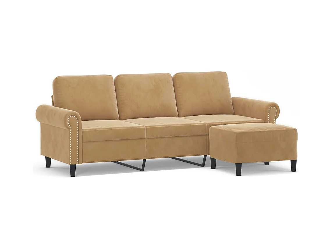Canapé à 3 places avec repose-pieds Marron 180 cm Velours