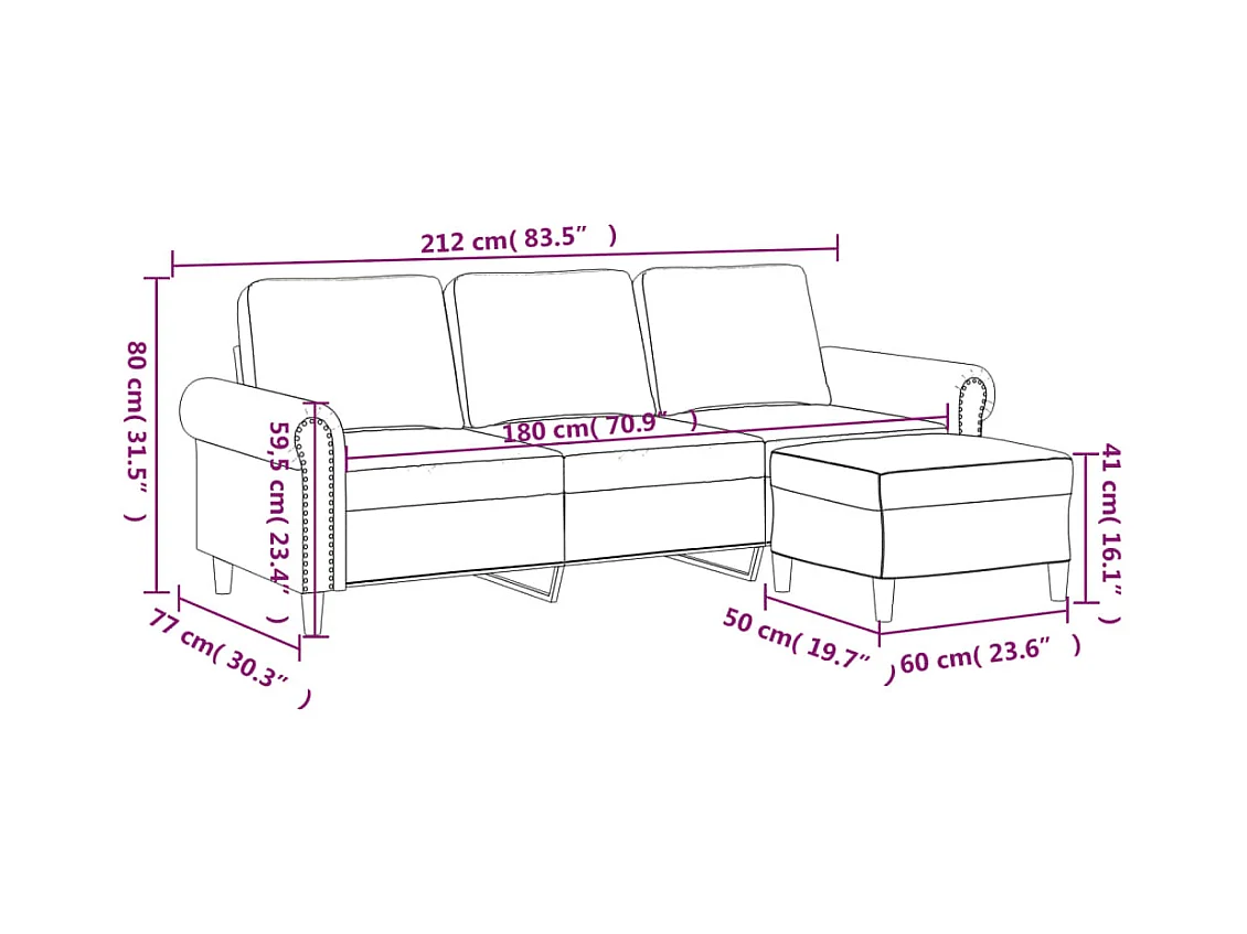 Canapé à 3 places avec repose-pieds Cappuccino 180cm Similicuir