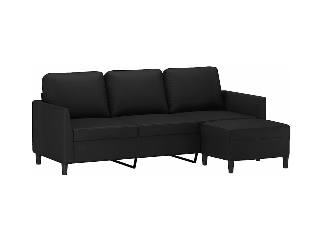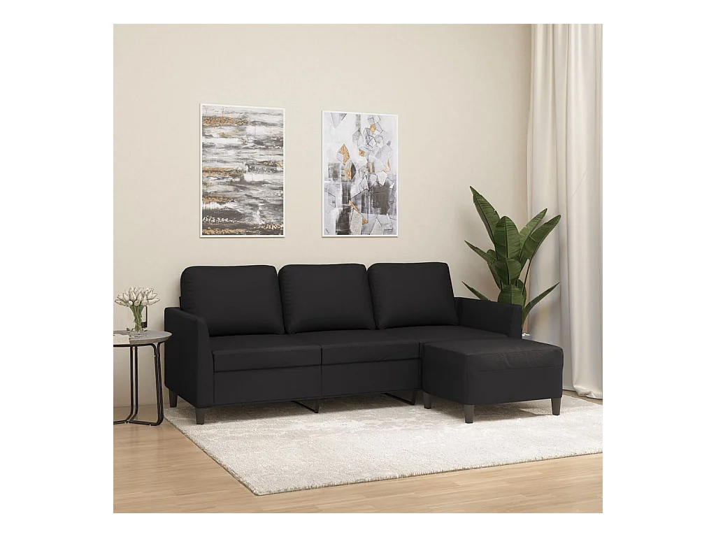 Canapé à 3 places avec repose-pieds Noir 180 cm Similicuir