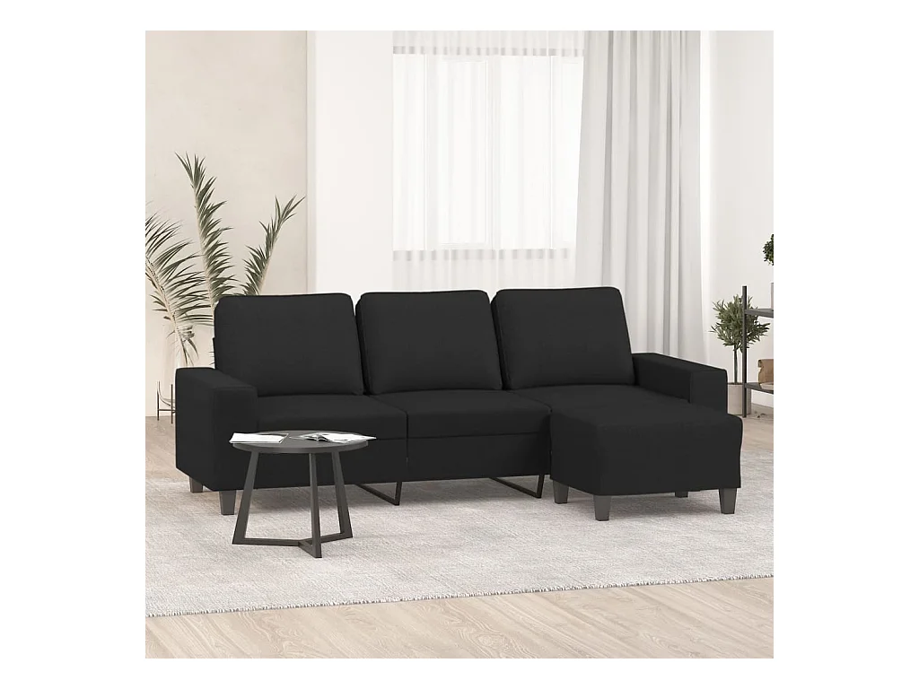 Canapé à 3 places avec repose-pieds Noir 180 cm Tissu OID7000