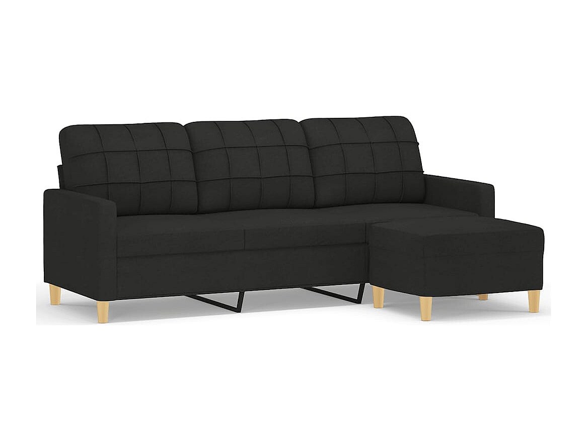 Canapé à 3 places avec repose-pieds Noir 180 cm Tissu