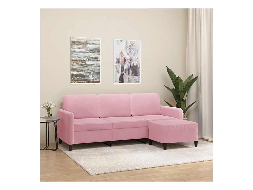 Canapé à 3 places avec repose-pieds Rose 180 cm Velours