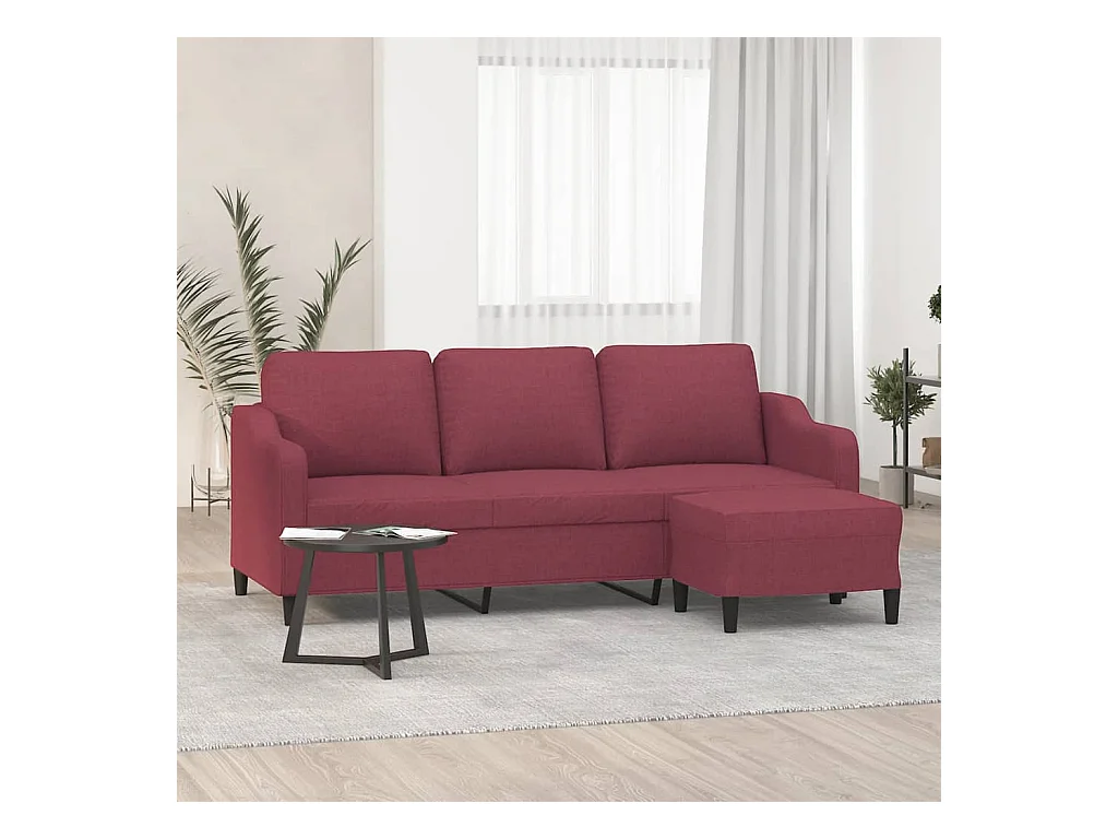Canapé à 3 places avec repose-pieds Rouge bordeaux 180 cm Tissu FR34132