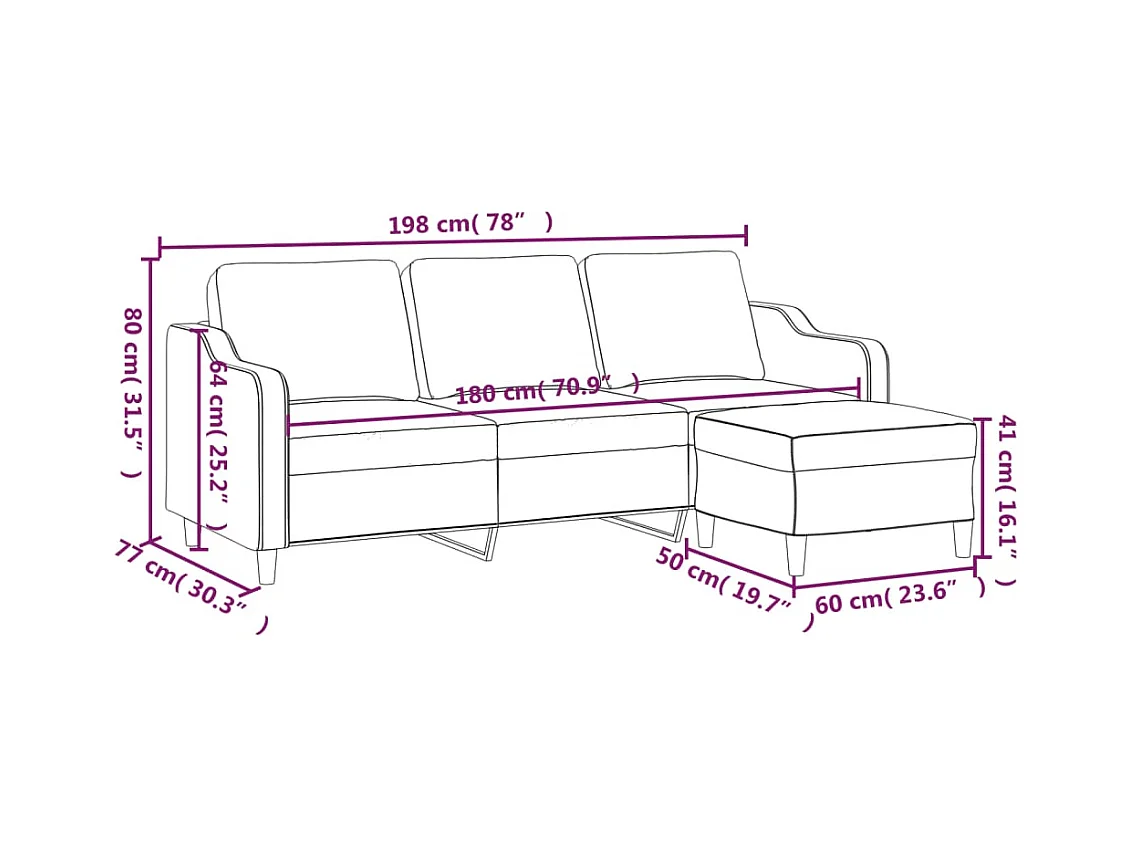 Canapé à 3 places avec repose-pieds Rouge bordeaux 180 cm Tissu