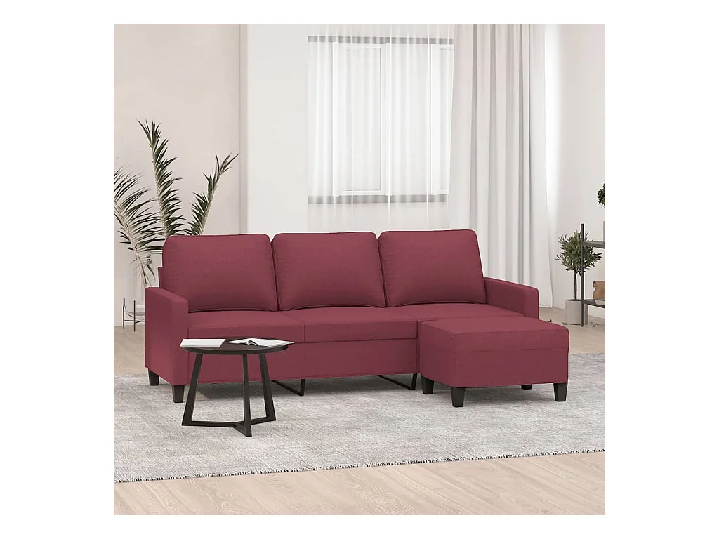 Canapé à 3 places avec repose-pieds Rouge bordeaux 180 cm Tissu FR34132