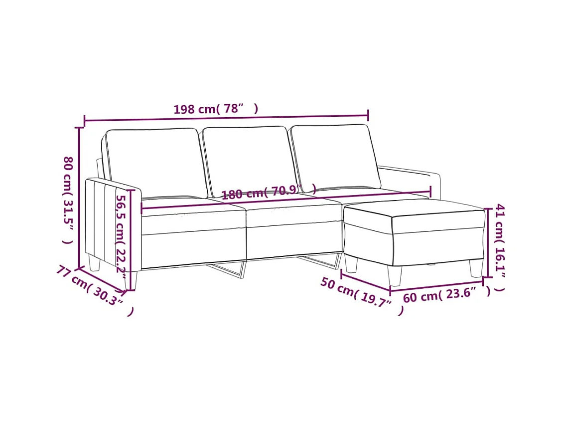 Canapé à 3 places et repose-pieds Rouge bordeaux 180 cm Velours FR41932