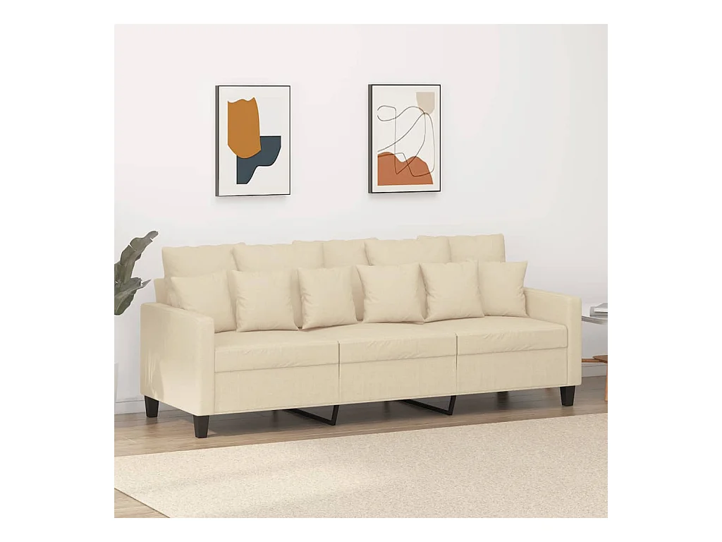 Canapé 3 places avec oreillers décoratifs crème 180 cm tissu