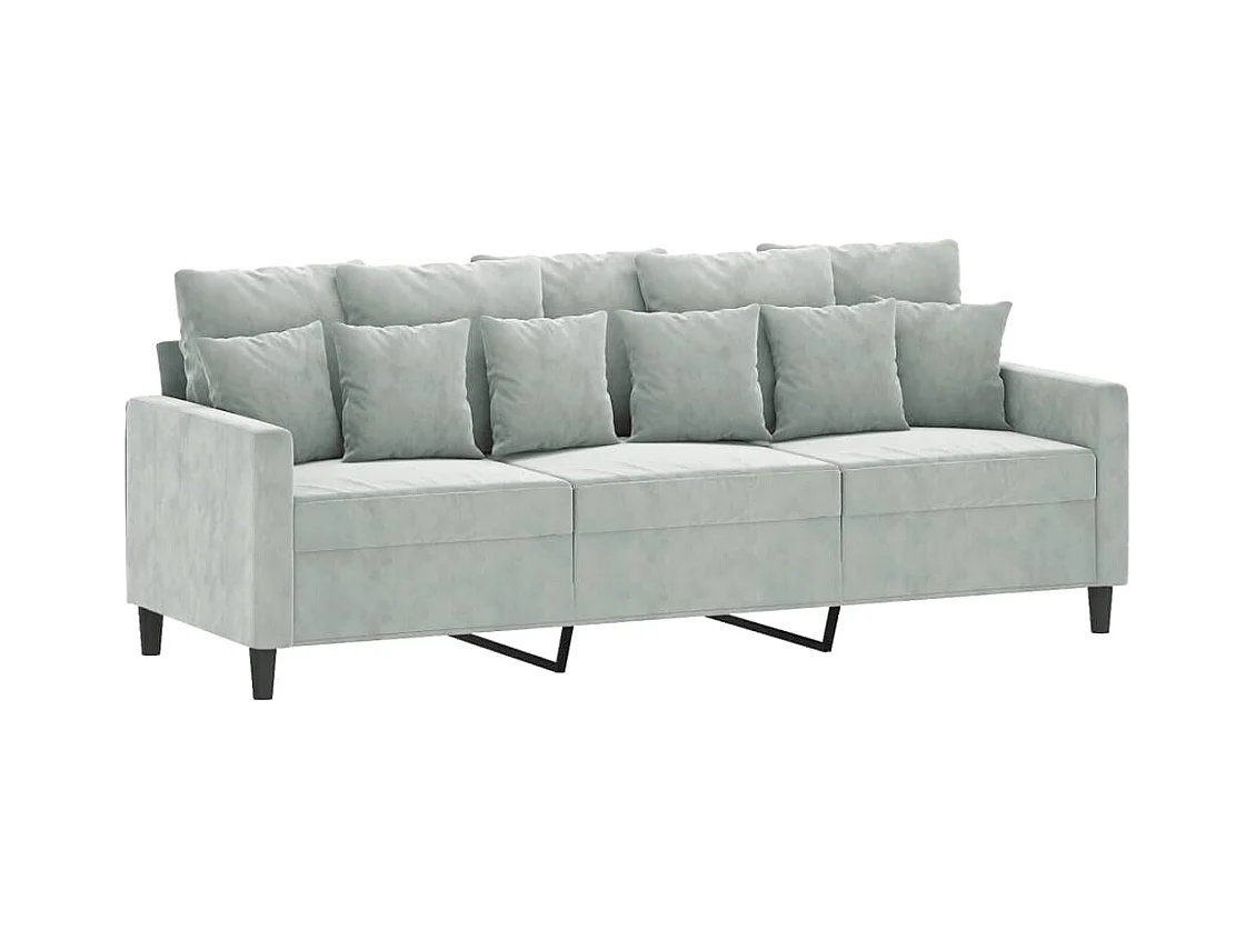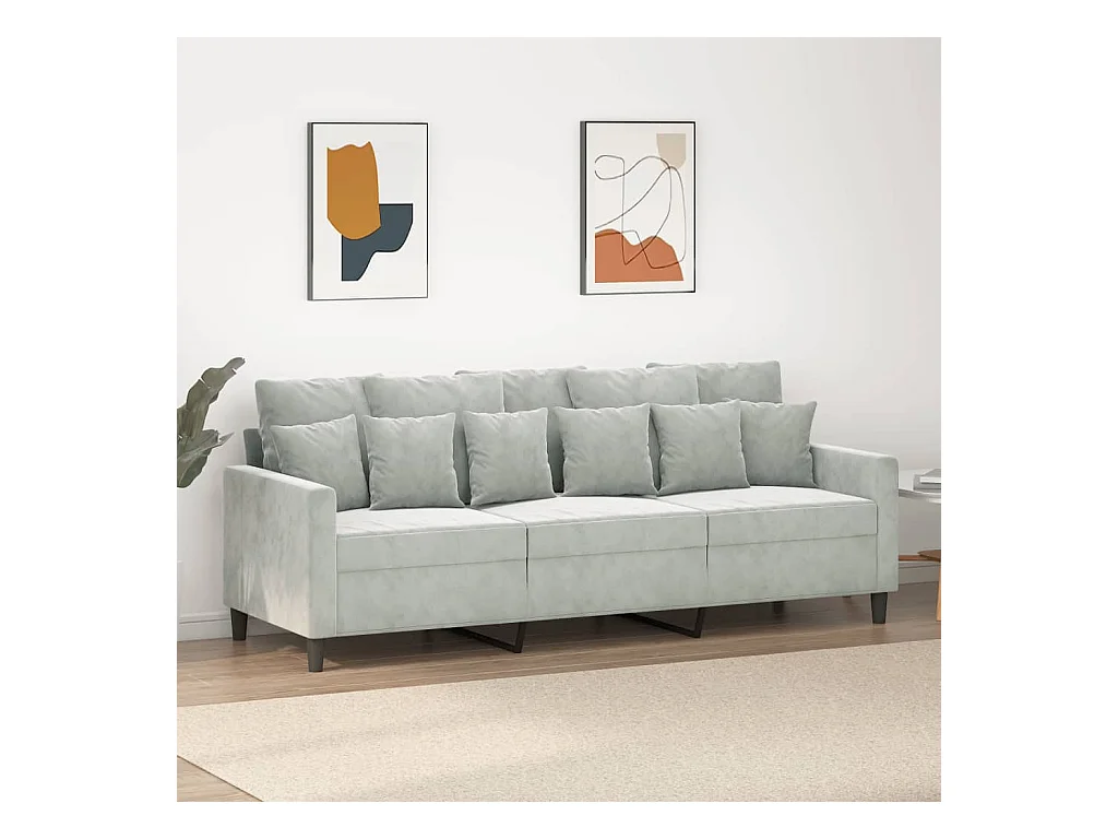 Canapé 3 places avec oreillers gris clair 180 cm velours