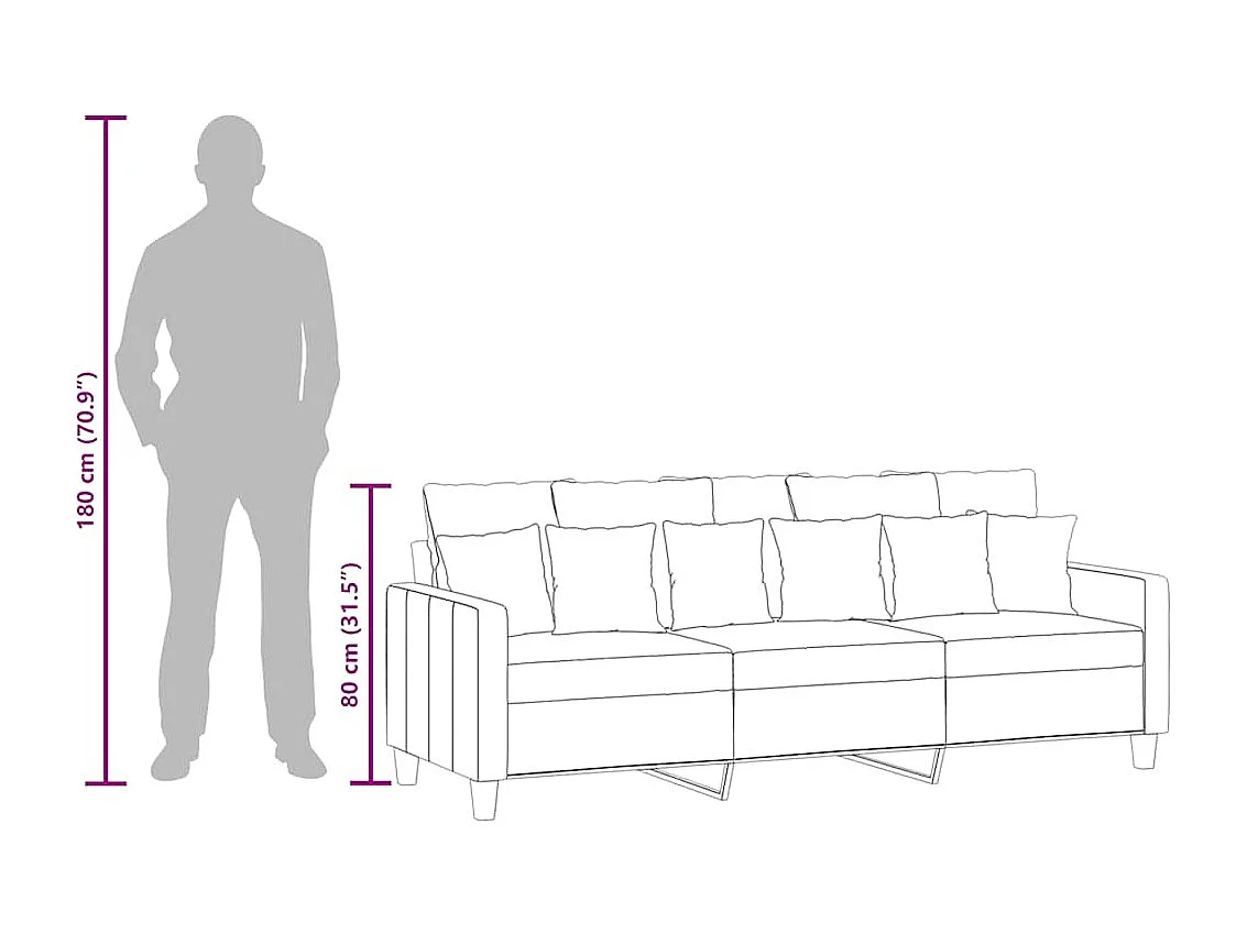 Canapé à 3 places Jaune clair 180 cm Tissu