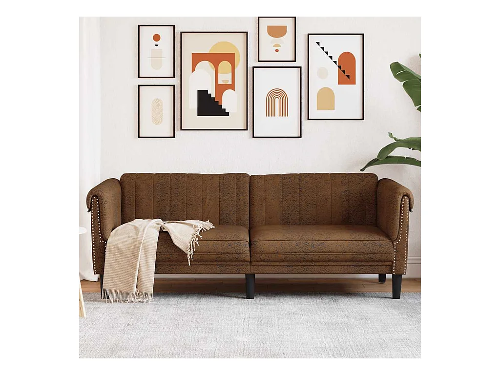 Canapé à 3 places marron similicuir daim