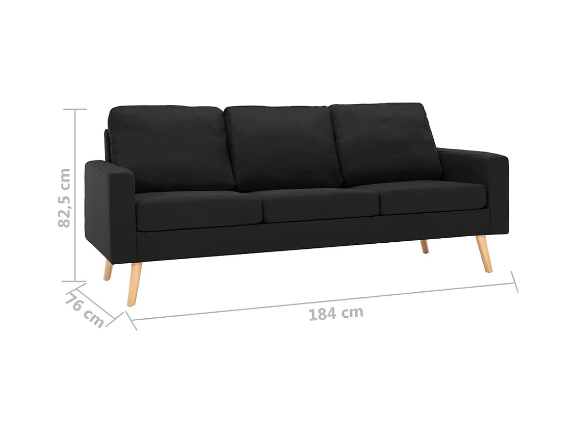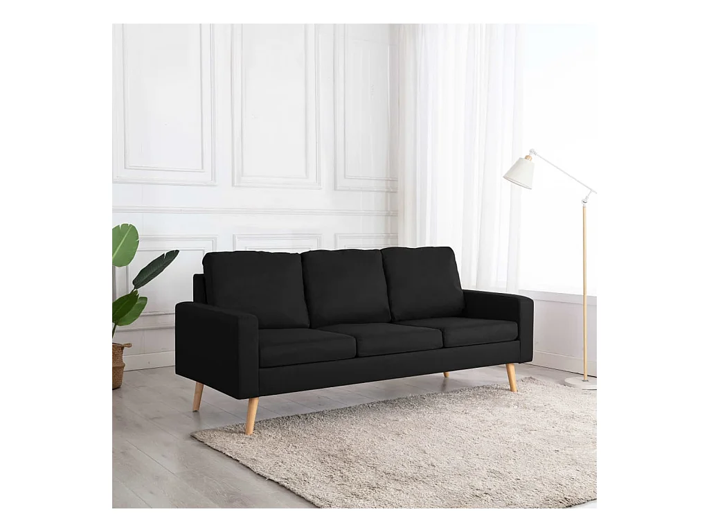 Canapé à 3 places Noir Tissu