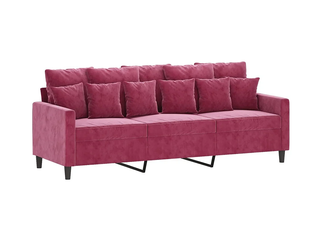 Canapé 3 places avec oreillers bordeaux 180 cm velours