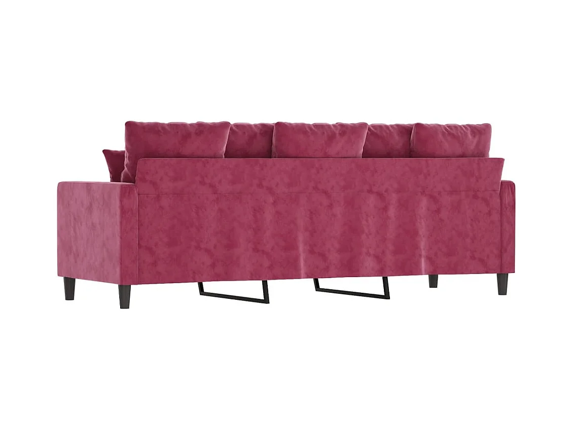 Canapé 3 places avec oreillers bordeaux 210 cm velours