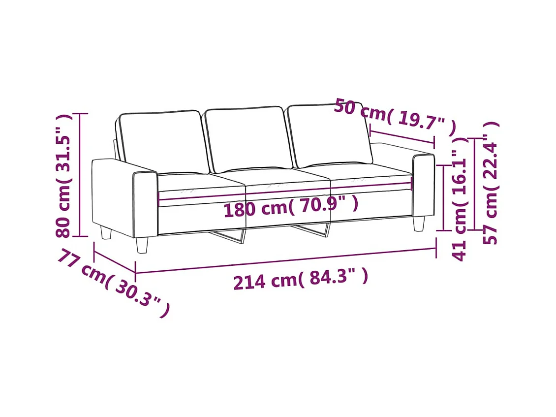 Canapé 3 places avec oreillers décoratifs taupe 210 cm tissu