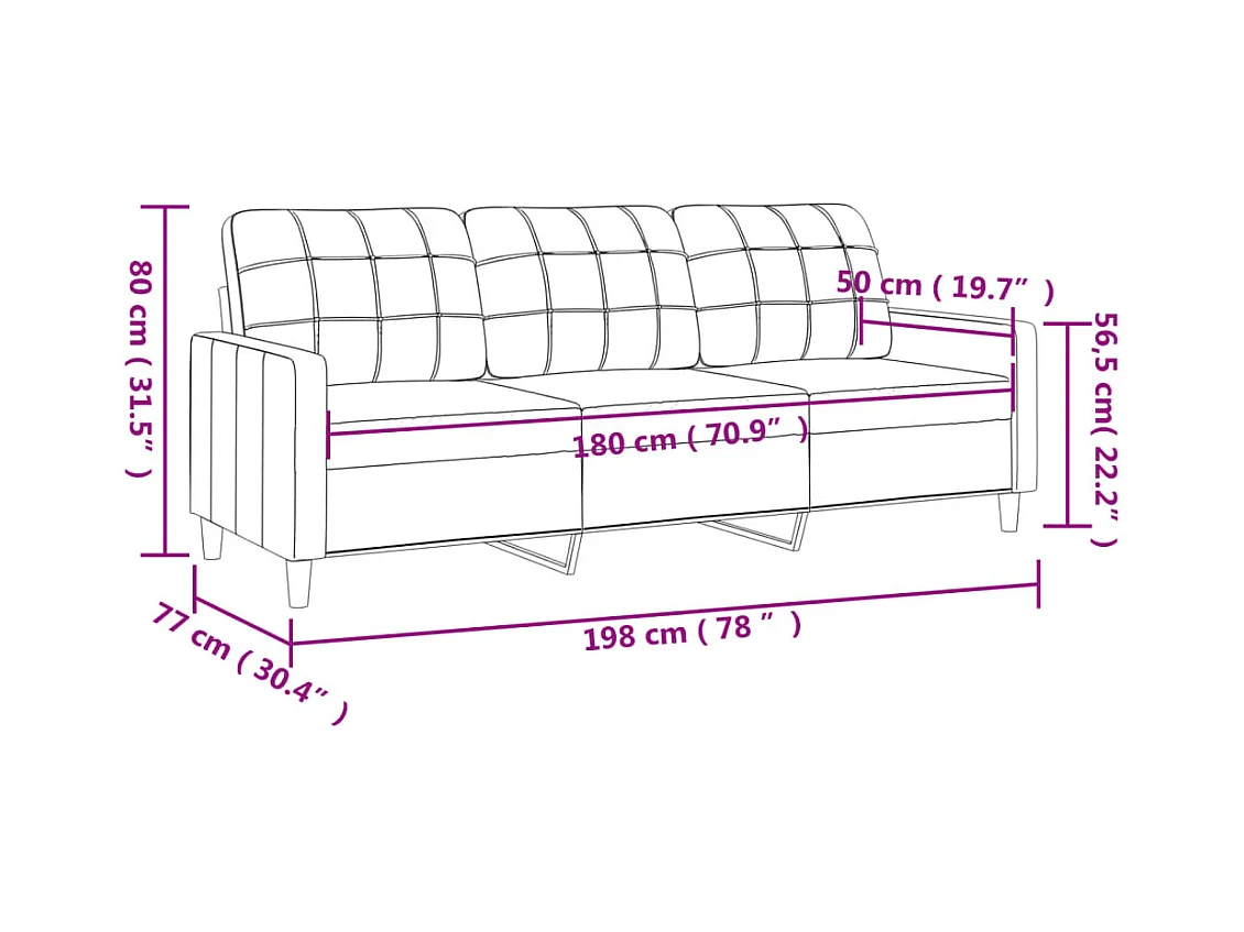 Canapé 3 places avec oreillers décoratifs taupe 210 cm tissu