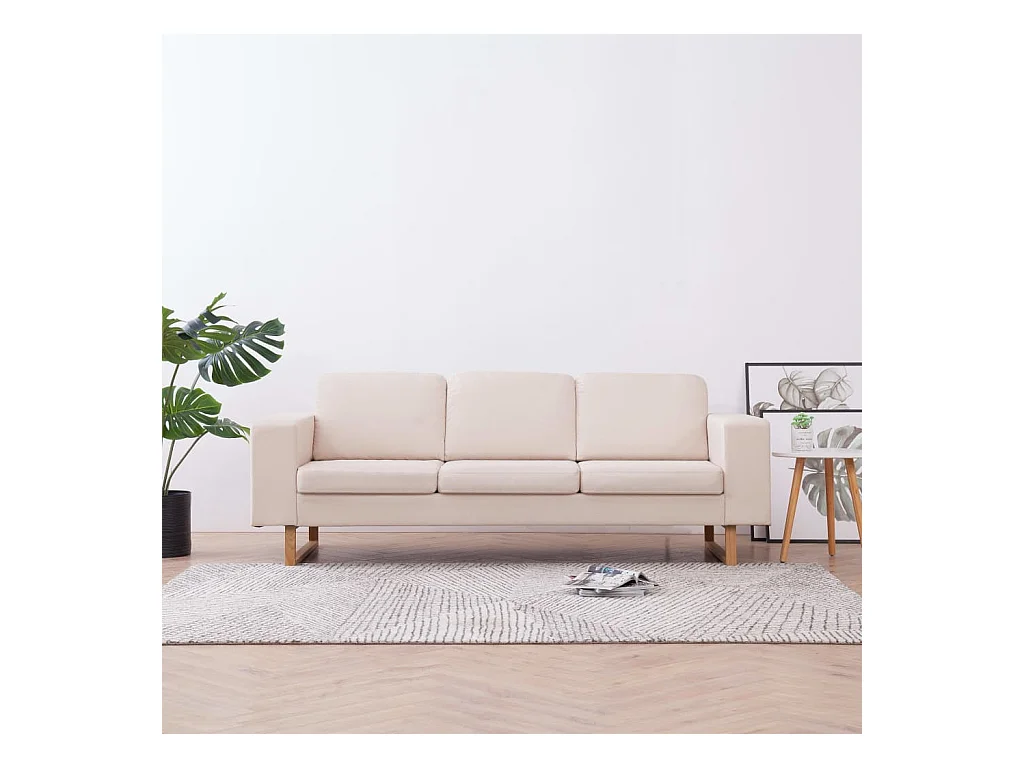 Canapé 3 places avec oreillers décoratifs crème 180 cm tissu