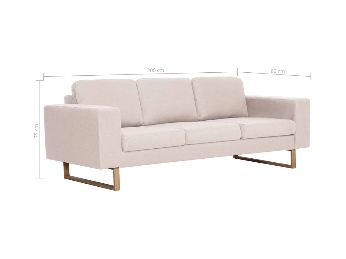 Canapé 3 places avec oreillers décoratifs crème 210 cm tissu