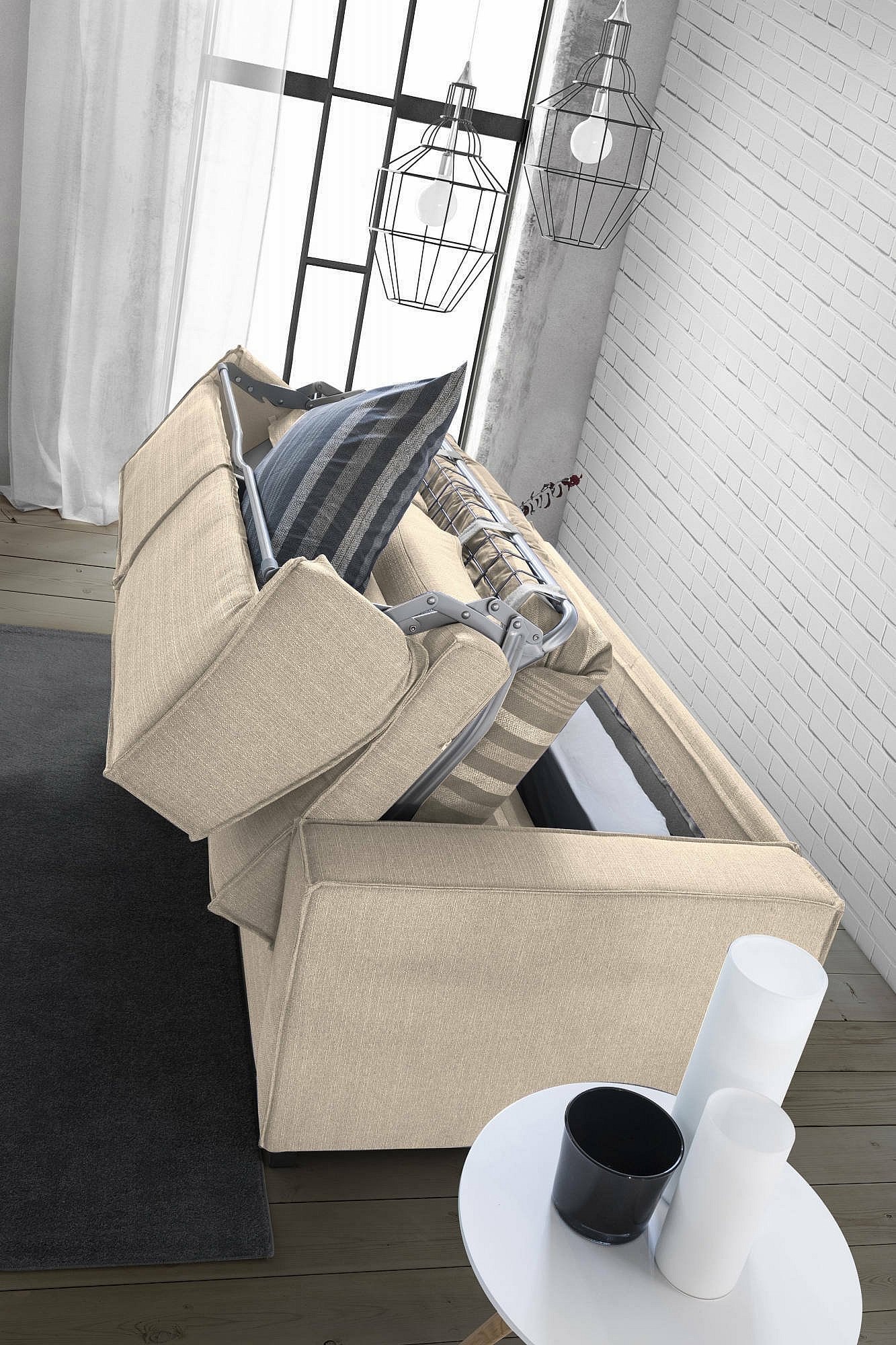 Daalber Slaapbank, Hoekbank, 100% Made in Italy, Bank met draaibare opening, Opbergschiereiland links, met standaard armleuningen, Cm 280x95h90, Taupe