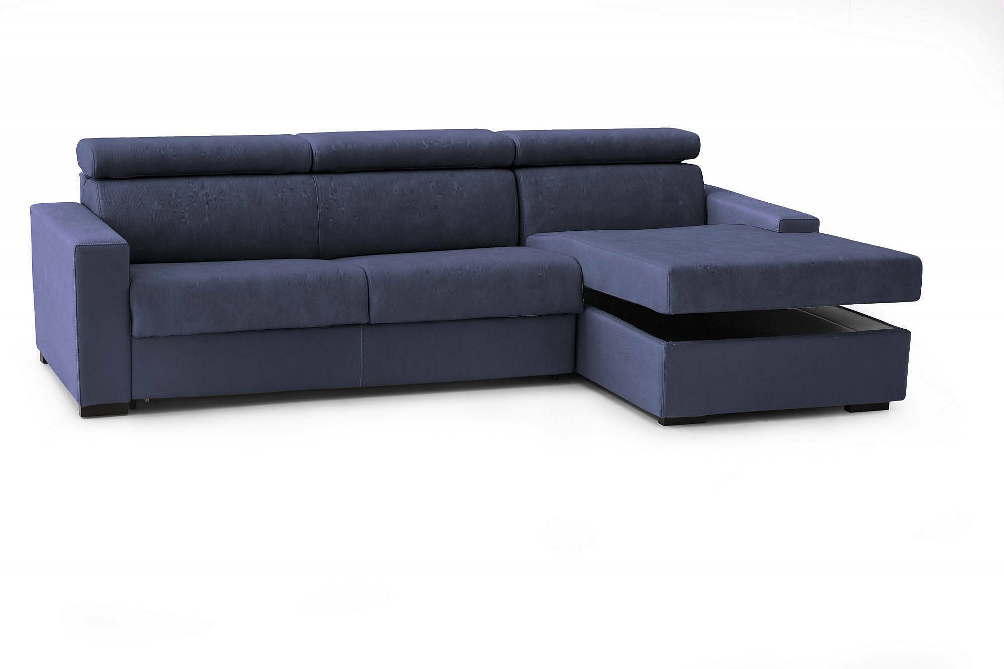 Canapé-lit Daaki, Canapé d'angle, 100% Made in Italy, Canapé avec ouverture pivotante, Péninsule de rangement droite, avec accoudoirs fins, 260x95h90 cm, Bleu