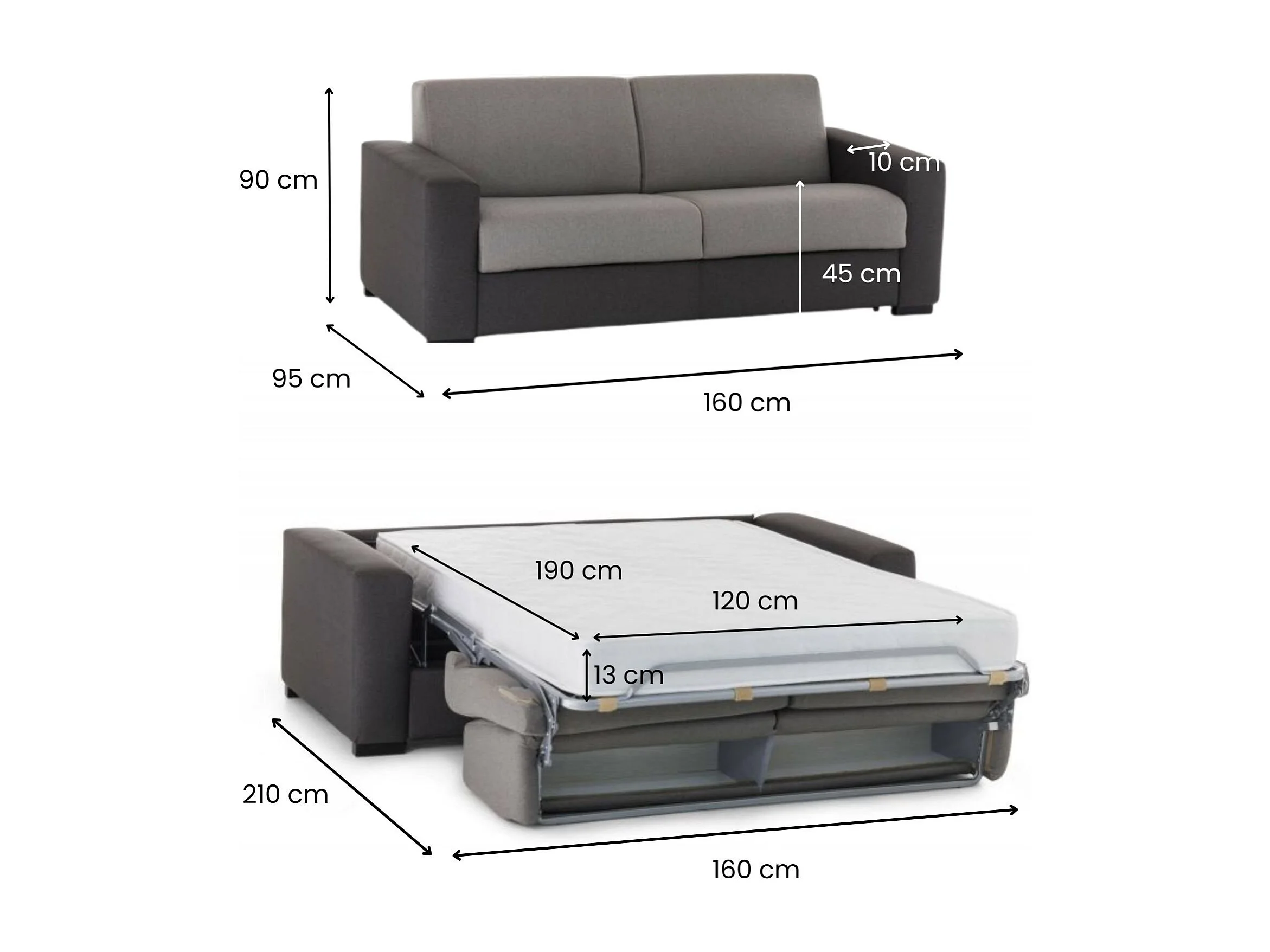Talamo Italia - Divano letto 2 posti Alcatraz, Cm 160x95h90, Grigio e Antracite