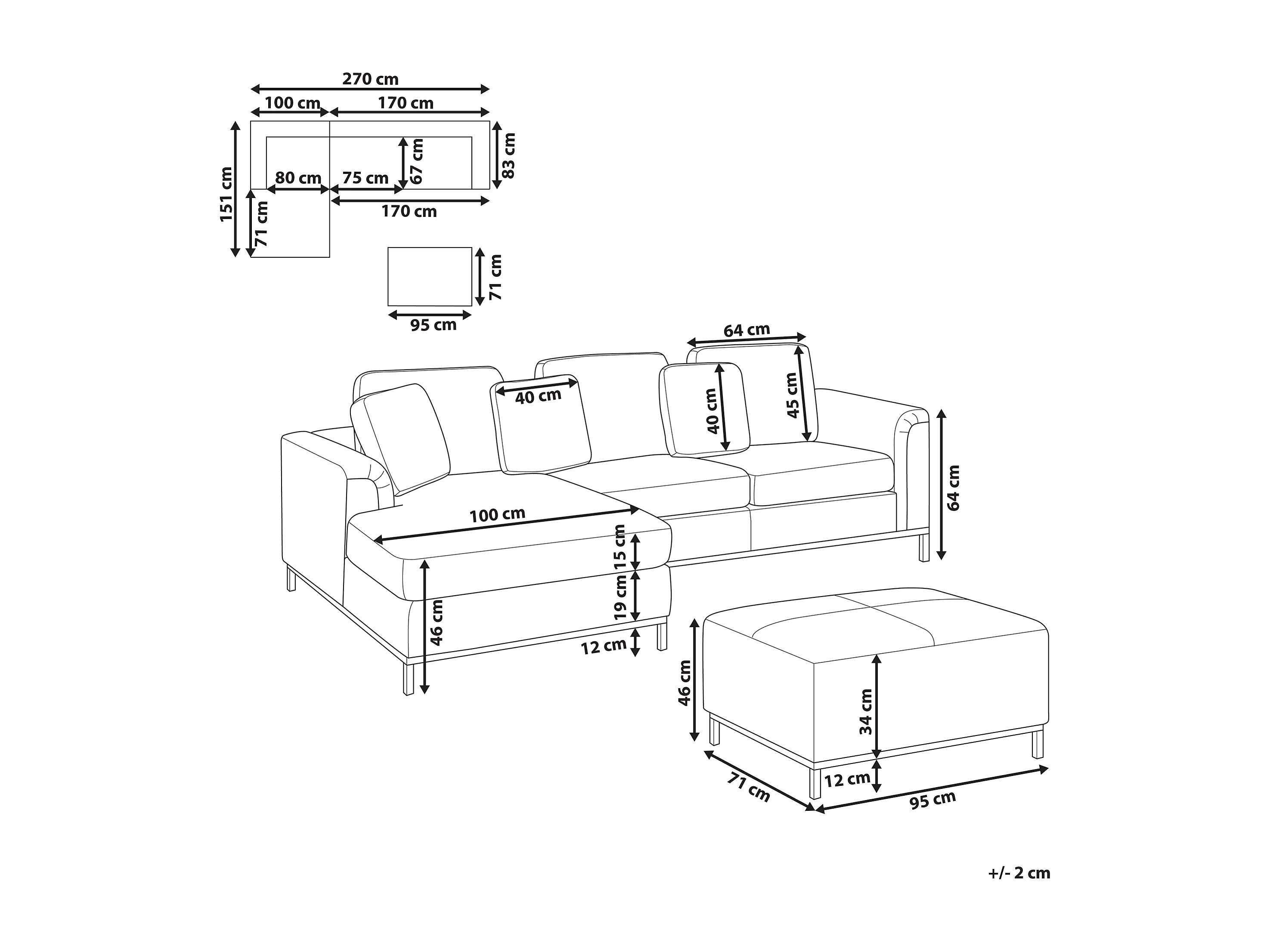 Canapé Angle à gauche en Cuir Véritable Marron et Pouf Ottoman Housses Amovibles Oslo