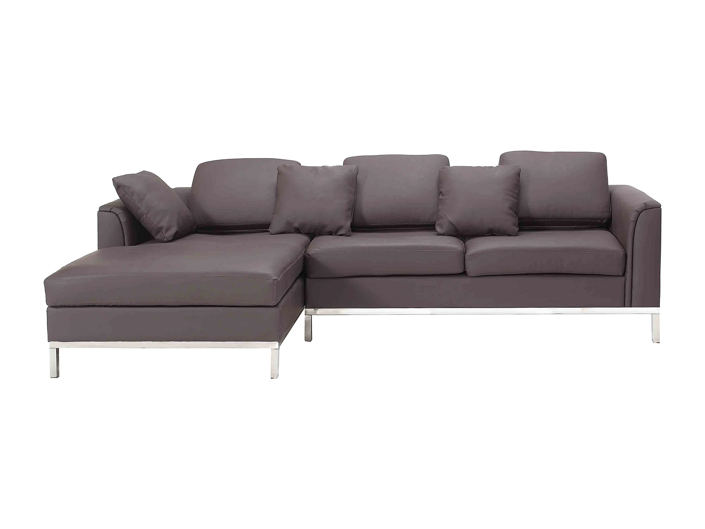 Canapé Angle à gauche en Cuir Marron Dossier Matelassé Housses Amovibles Oslo