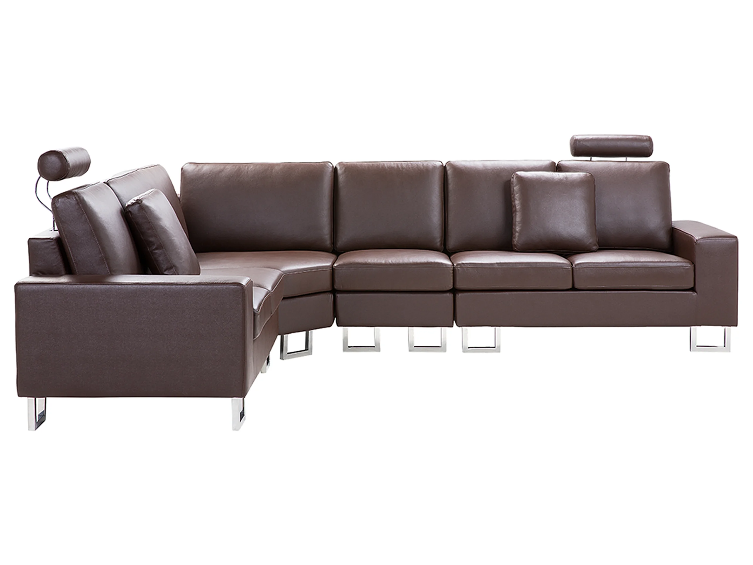 Canapé d'Angle à Droite en Cuir Marron avec Appui-Tête Réglable Stockholm