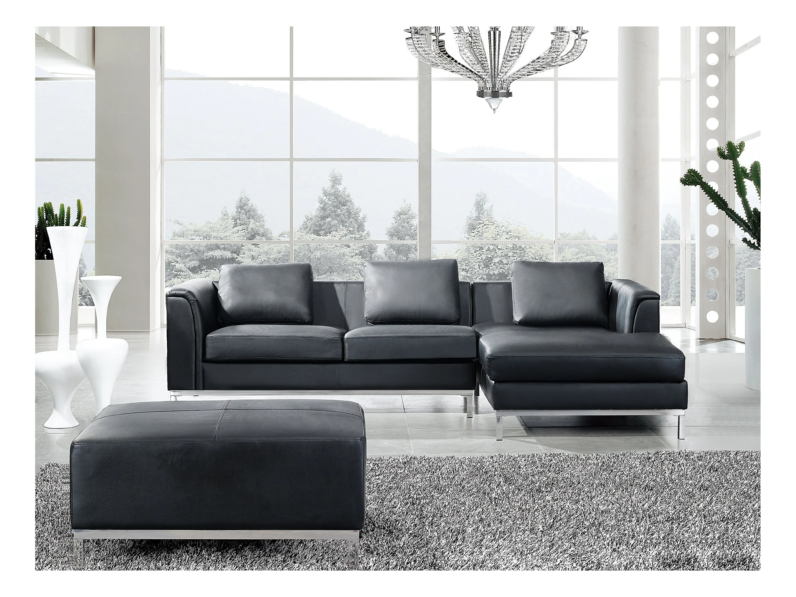 Canapé Angle à droite en Cuir Véritable Noir Dossier Matelassé Housses Amovibles Oslo