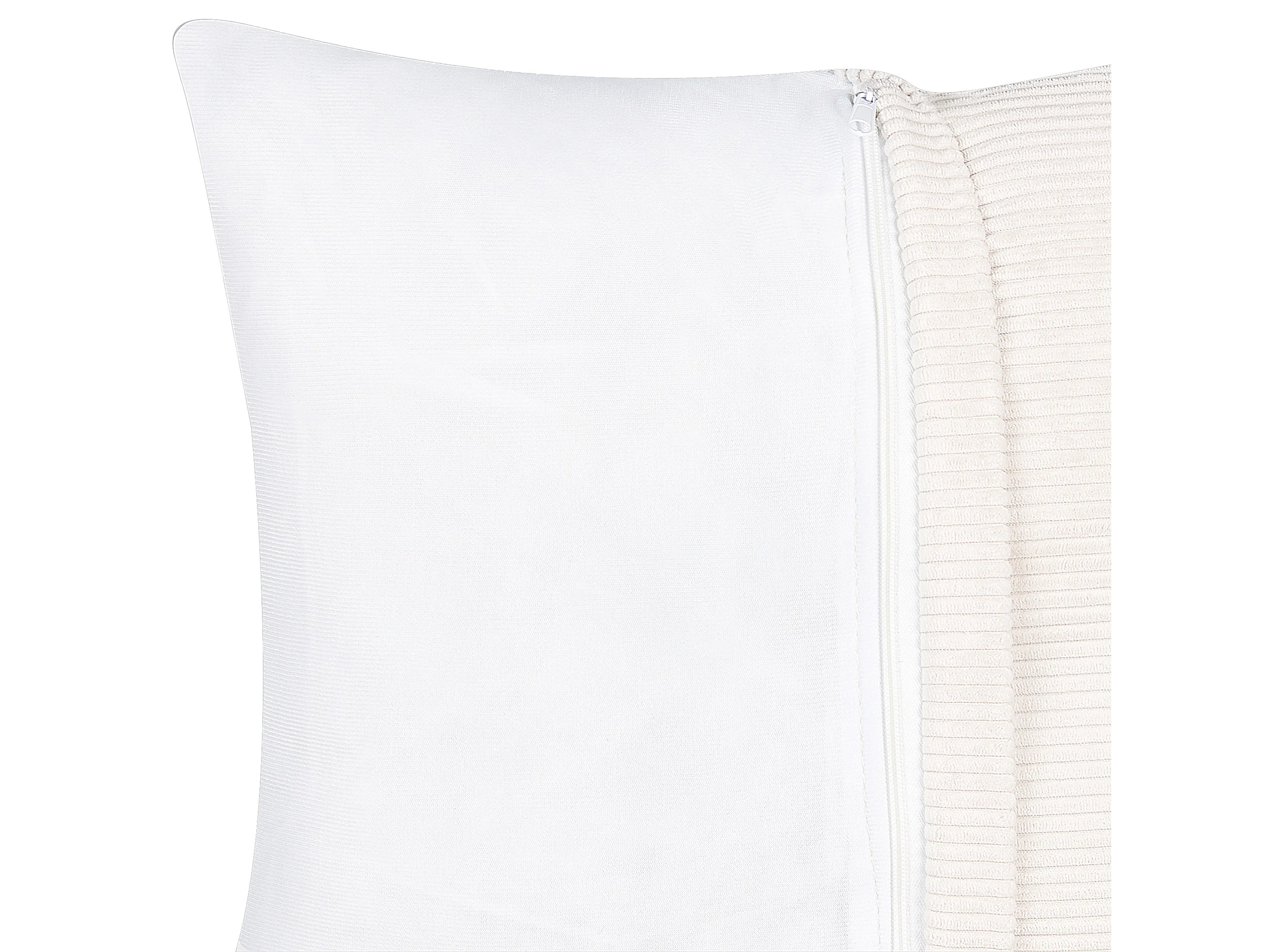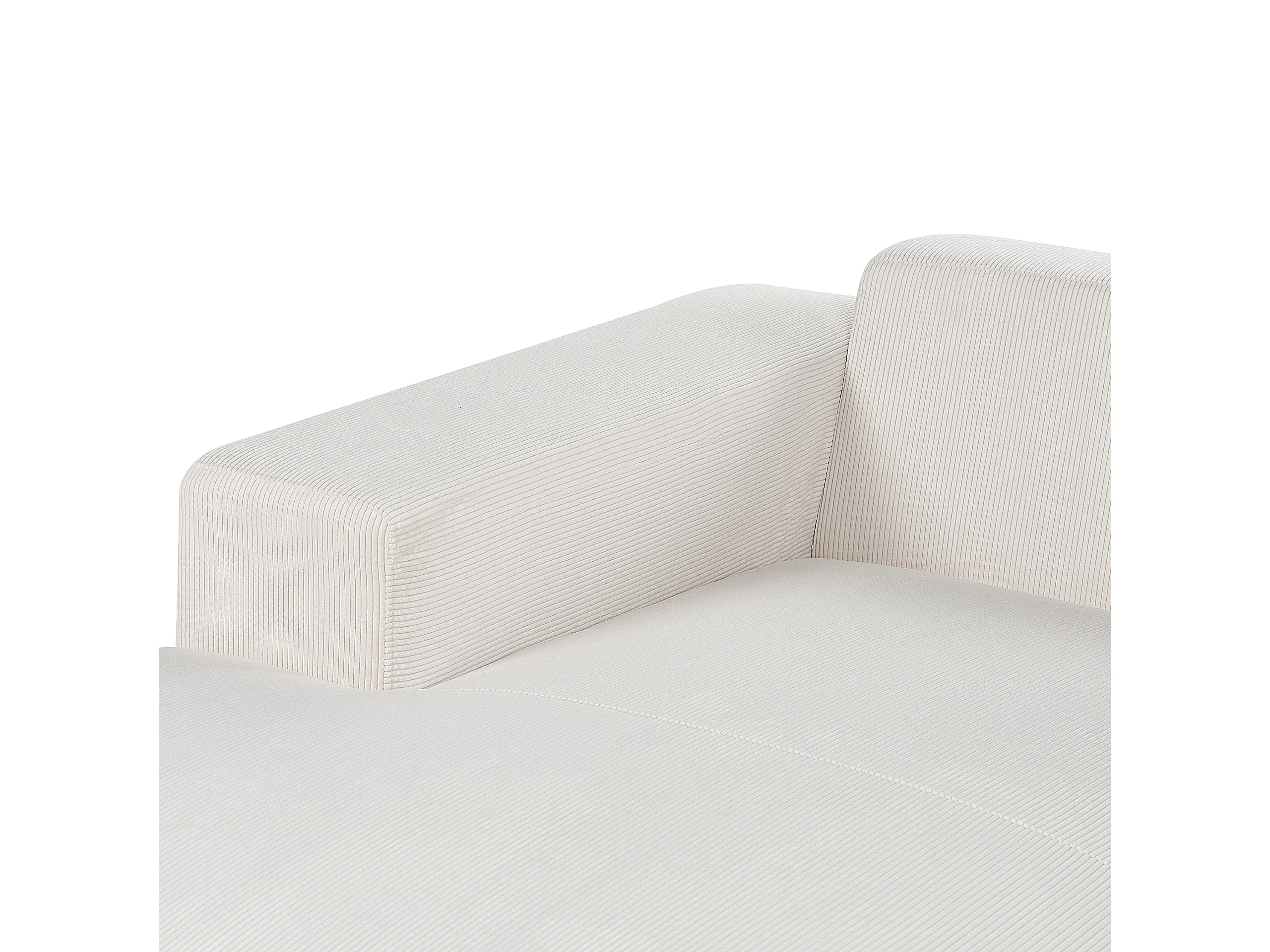 Canapé Angle à Droite 4 Places en Velours Côtelé Blanc Cassé avec 4 Coussins Supplémentaires Lungo