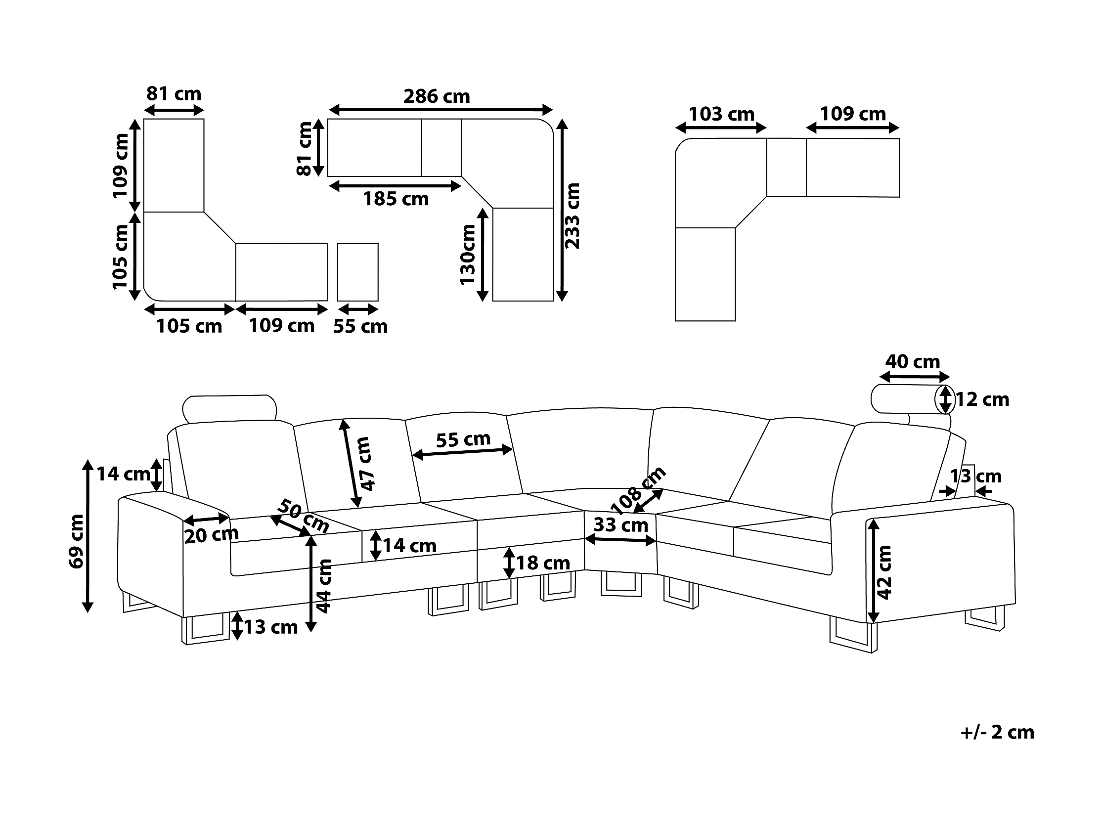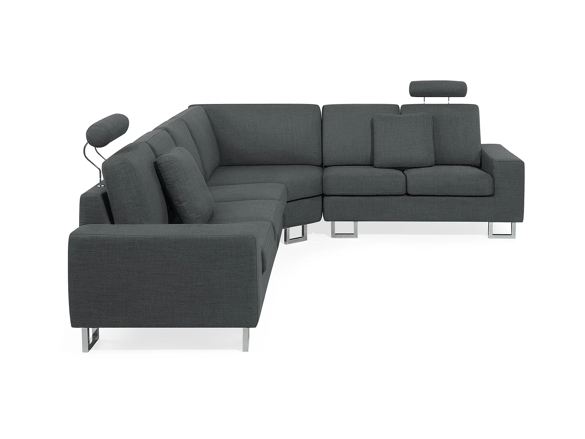 Canapé d'Angle à droite en Tissu Gris Foncé avec Appui-Tête Réglable Stockholm
