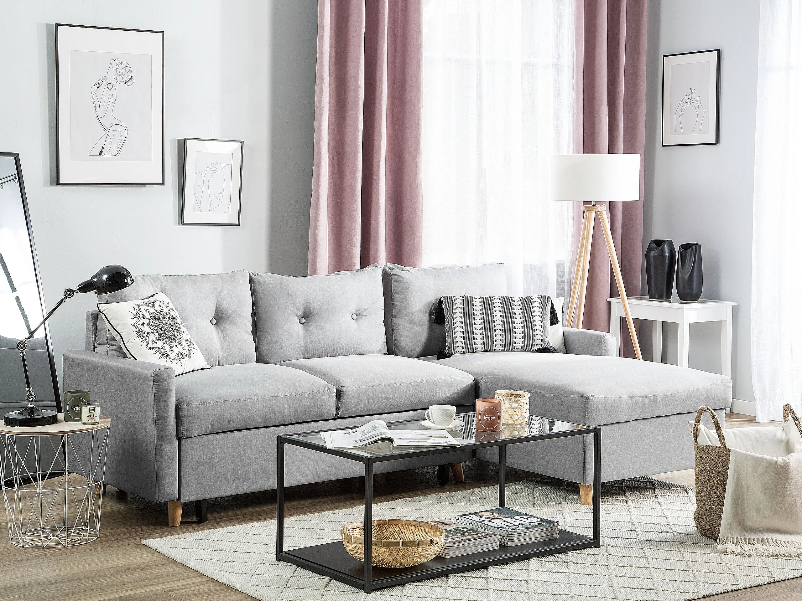 Beliani - Canapé Angle à Gauche - Flakk - Tissu, Gris Clair
