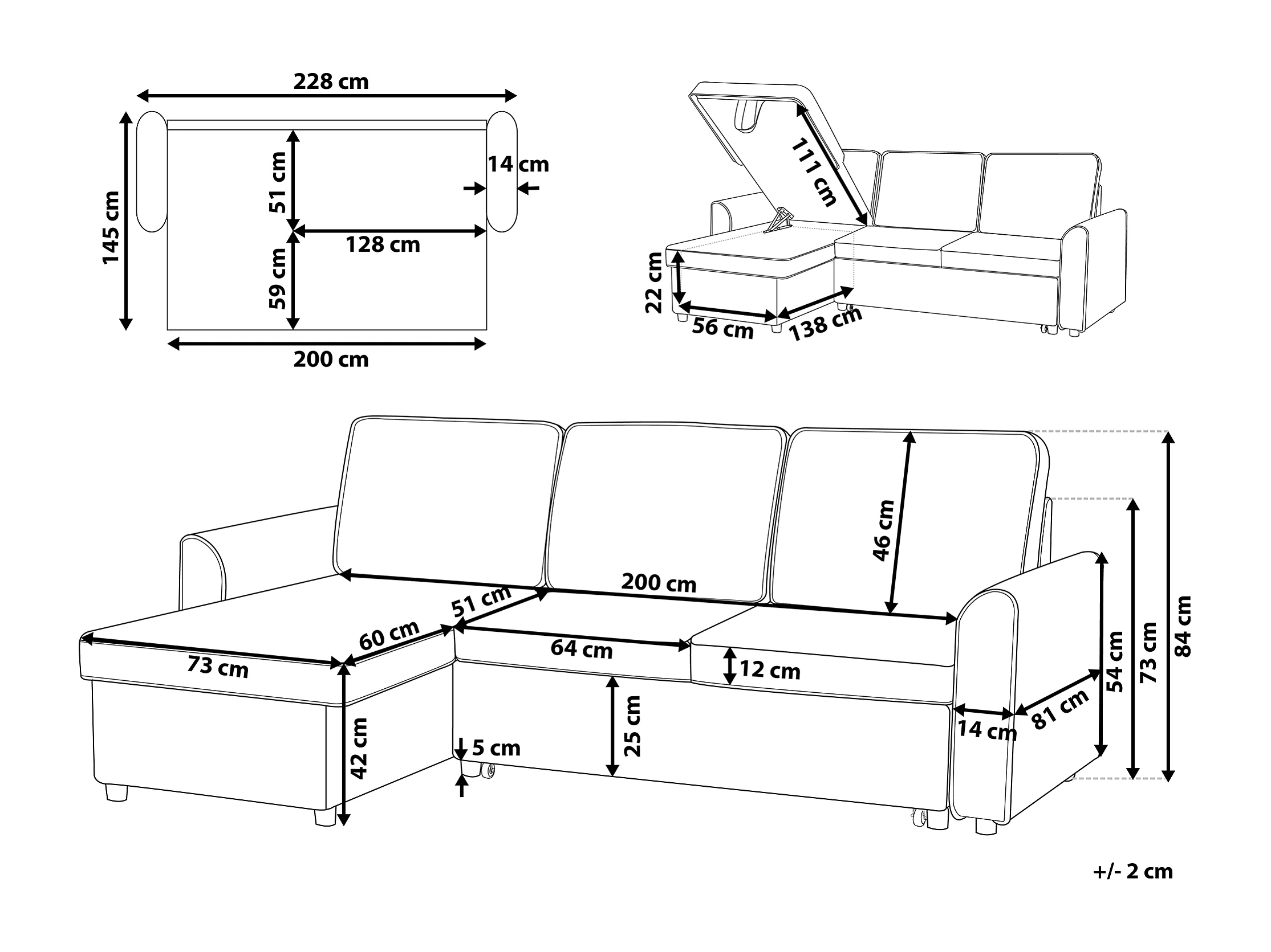 Beliani - Canapé Angle à Droite - Nesna - Avec Rangement, Tissu, Noir