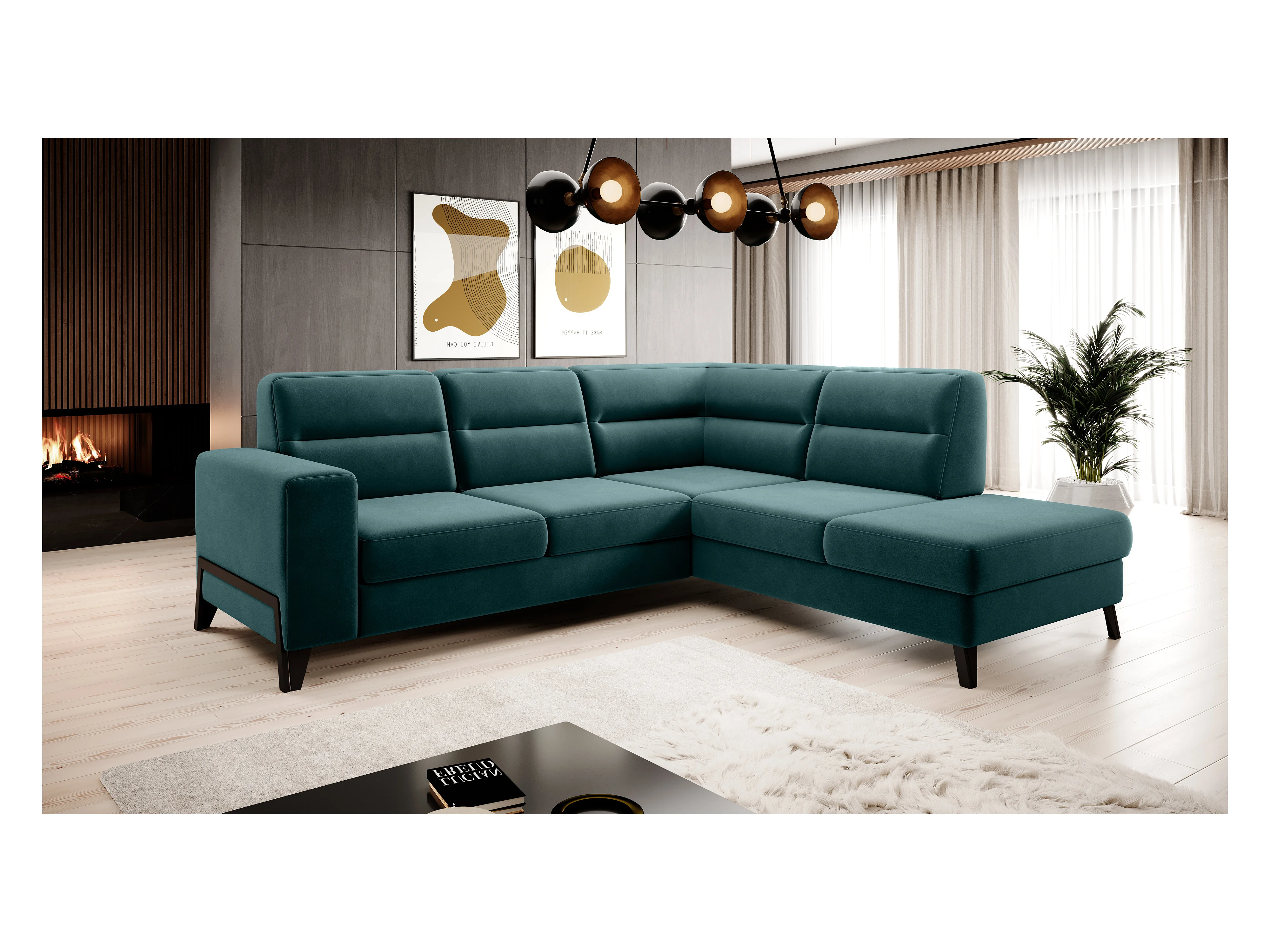 Canapé d'angle droit convertible velours vert bleuté Zurik 276cm