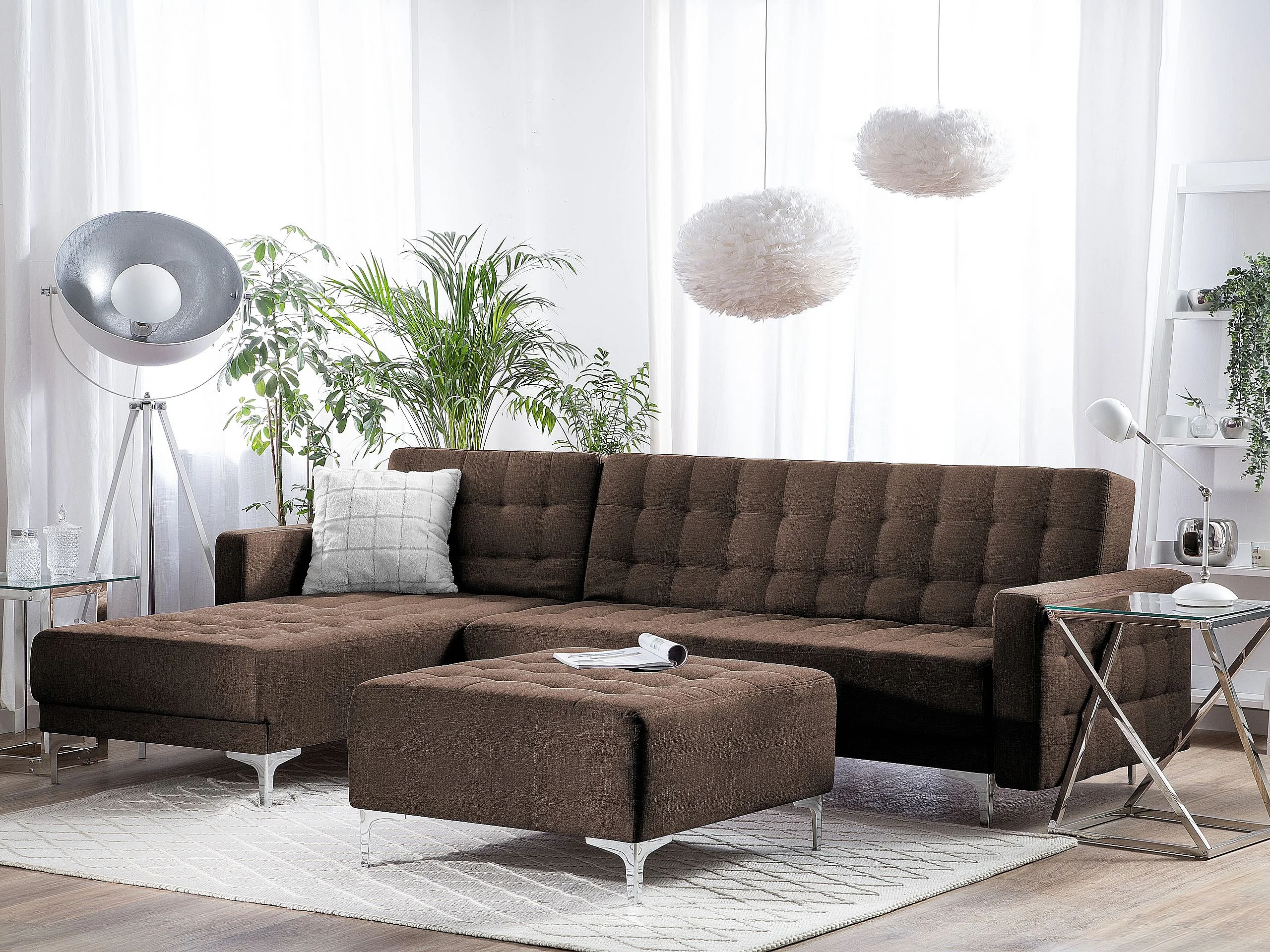 Canapé-lit d'angle modulable 4 places ABERDEEN Tissu Marron foncé avec ottoman Côté droit