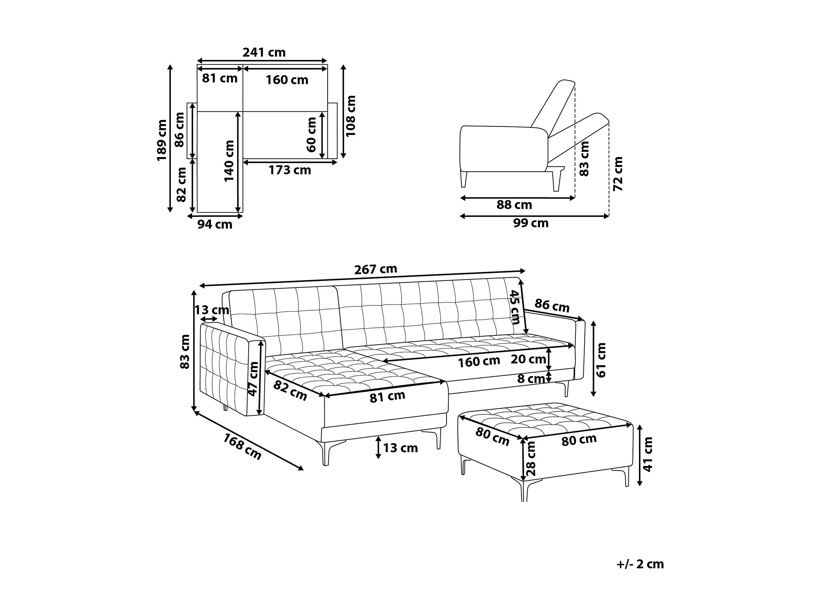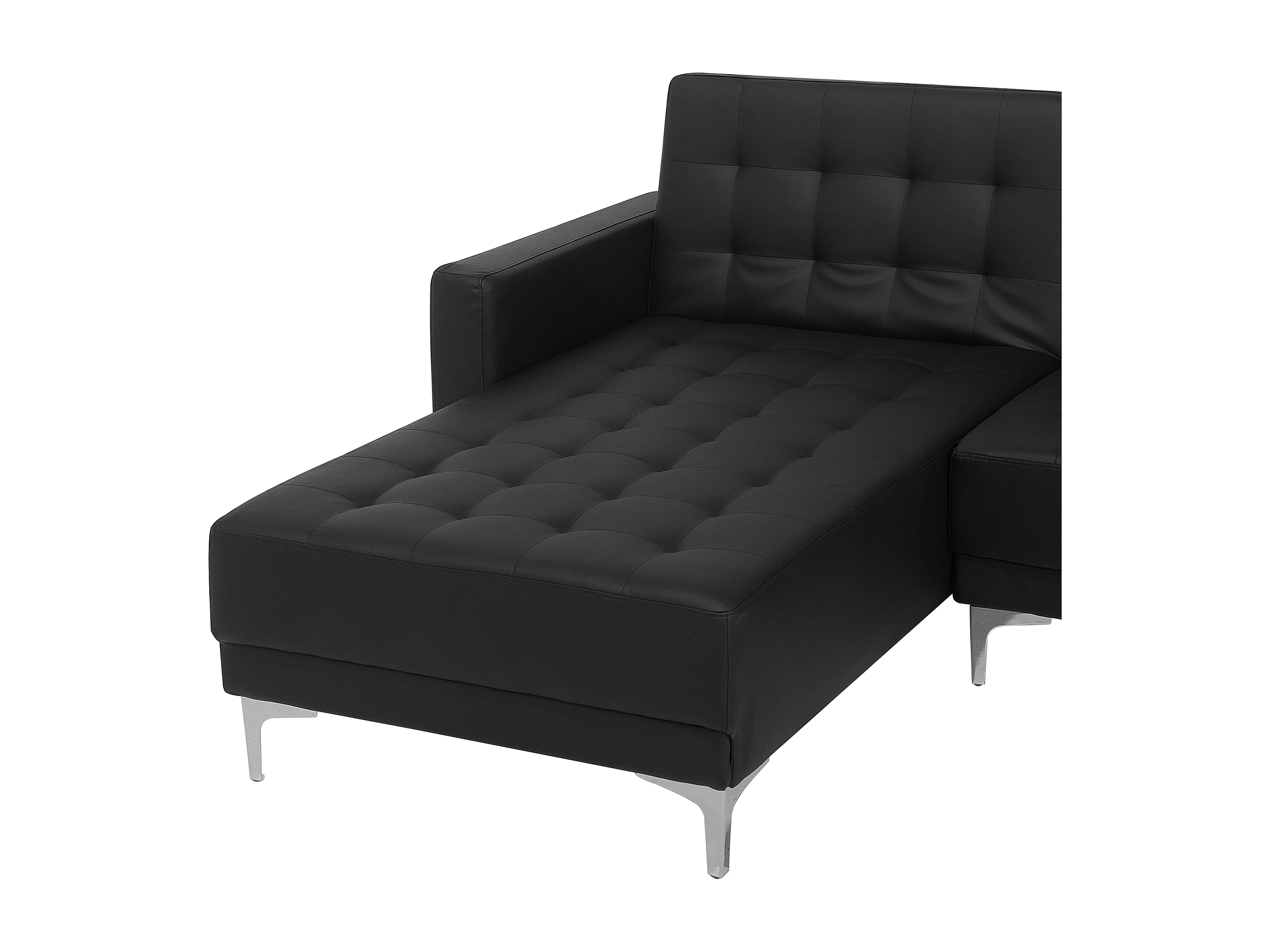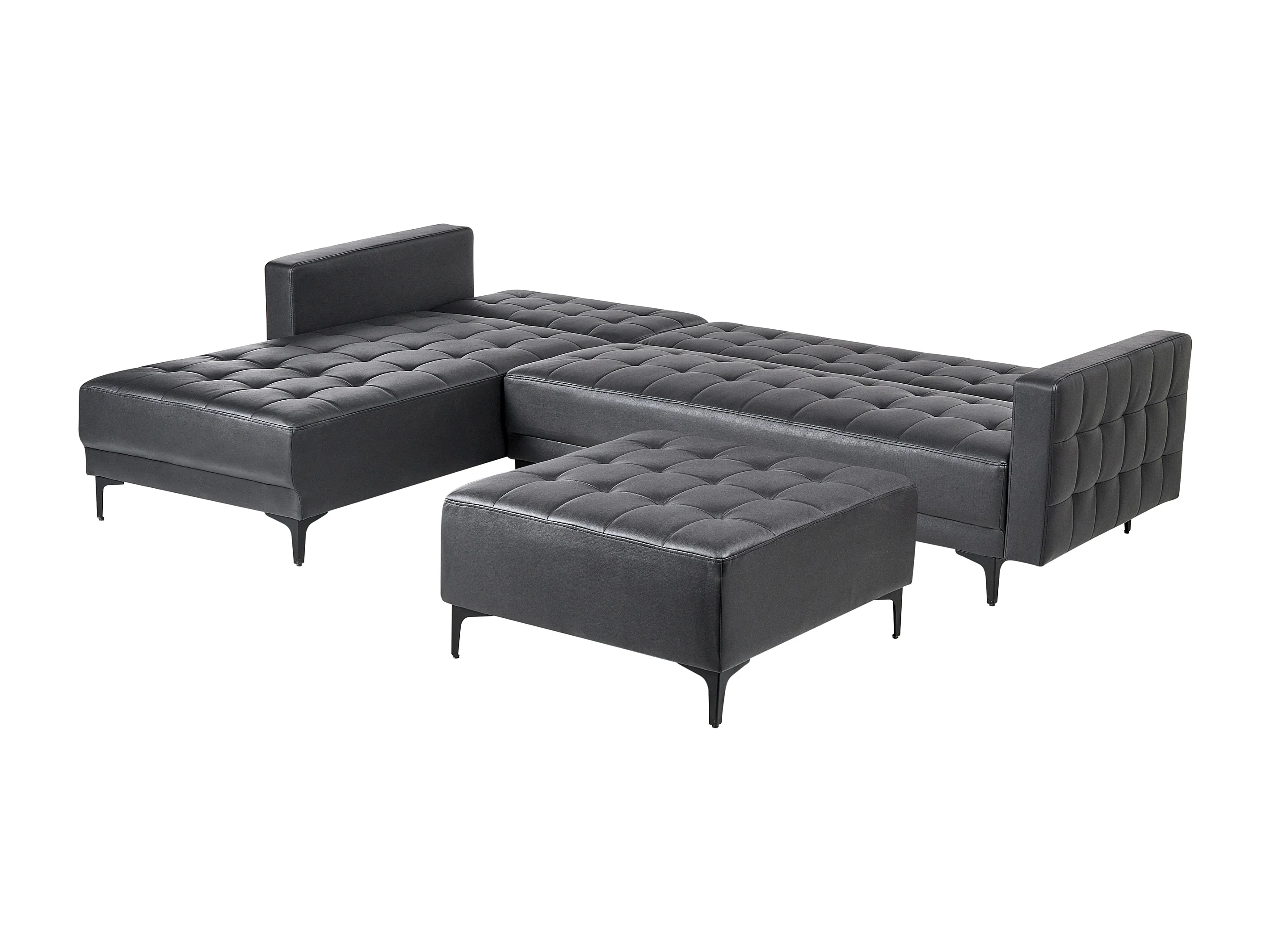 Canapé-lit d'angle modulable 4 places ABERDEEN Cuir PU Noir avec ottoman Côté droit