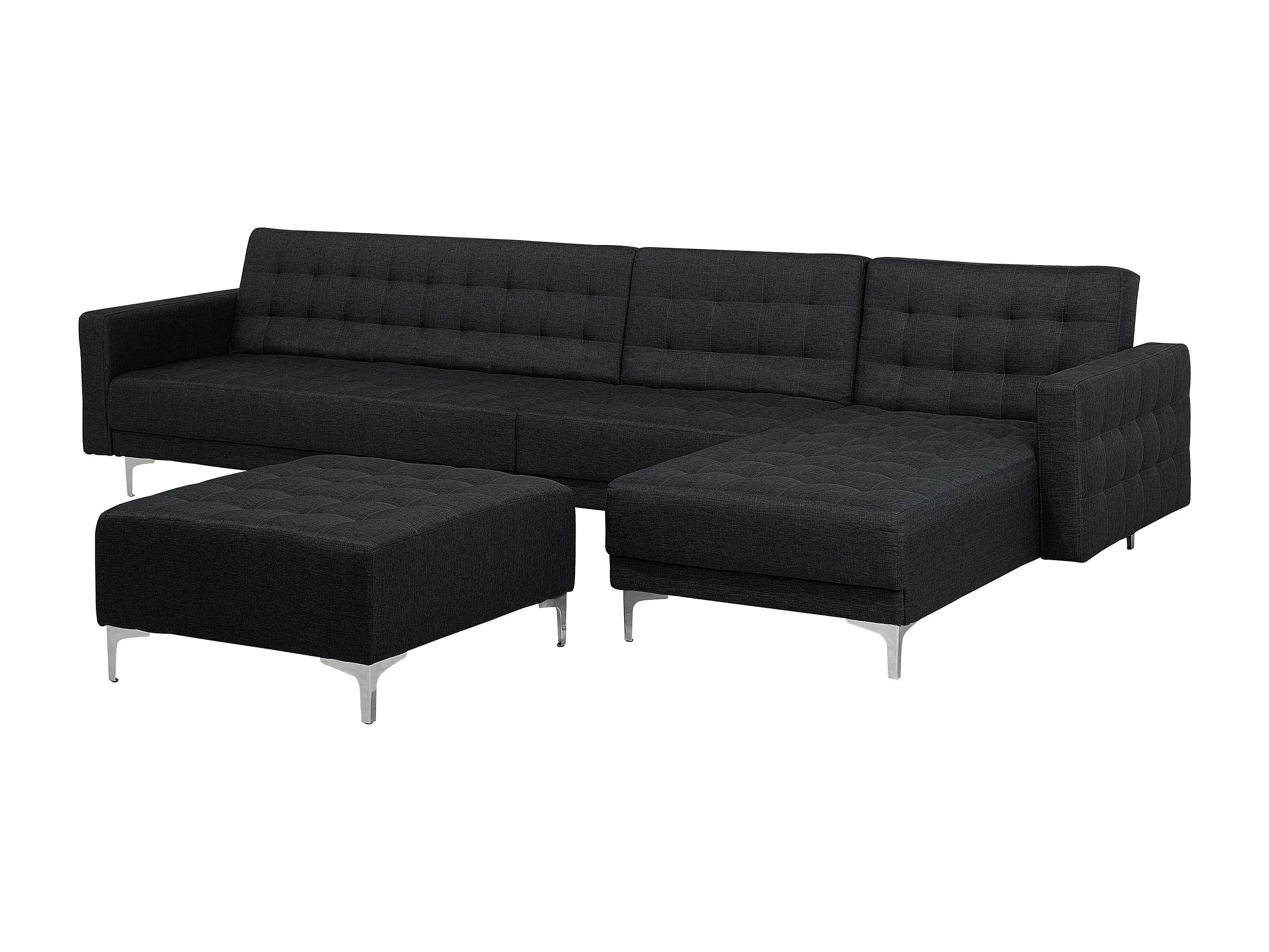 Canapé-lit d'angle modulable ABERDEEN Tissu Gris graphite avec ottoman 5 places Côté droite