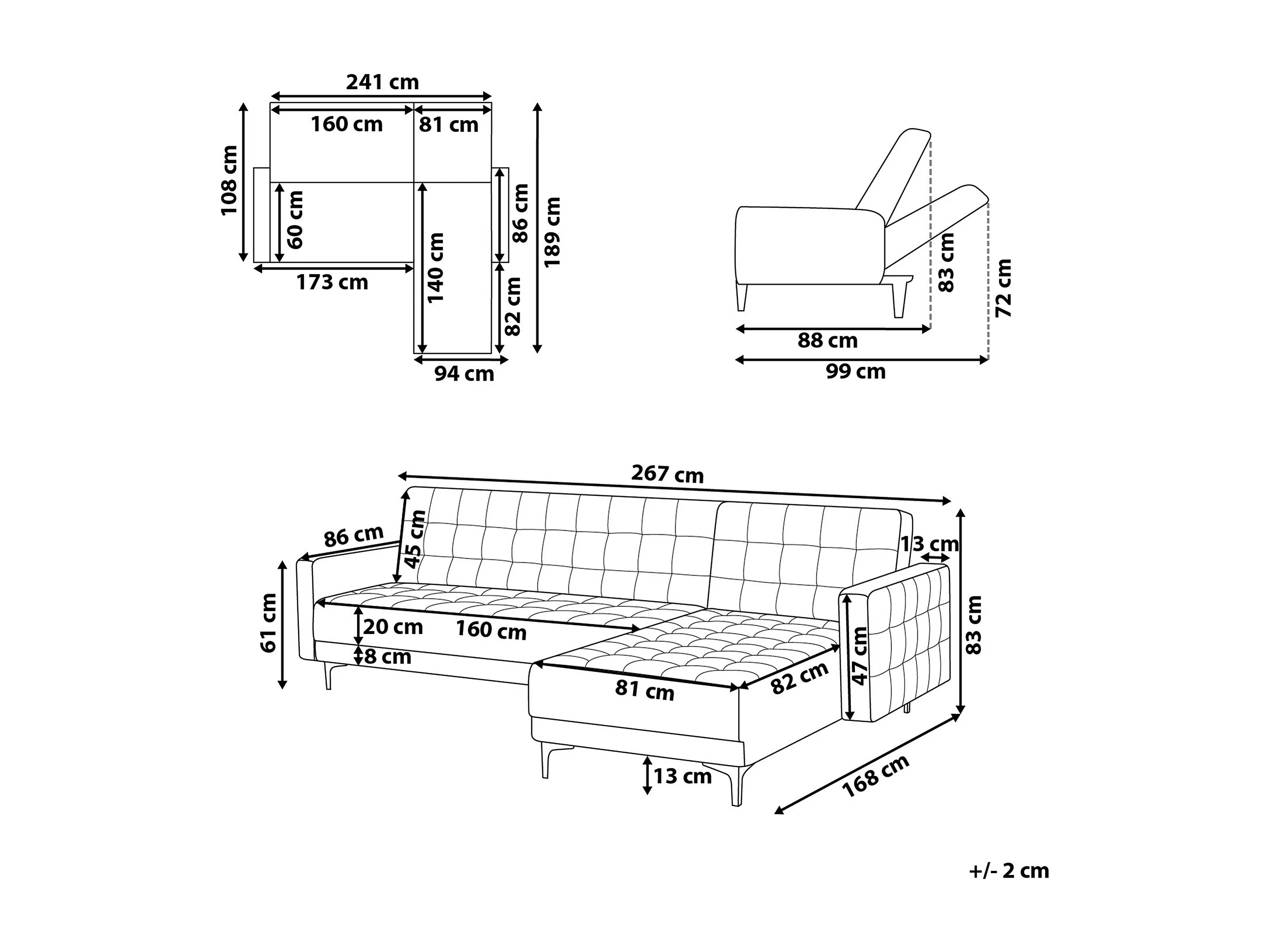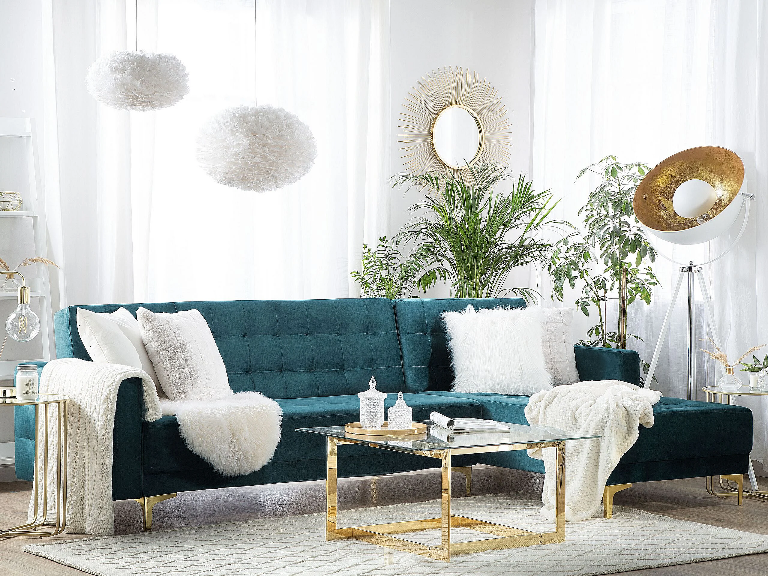 Canapé Angle à droite en Velours Bleu Paon 4 Places Dossier Réglable Aberdeen