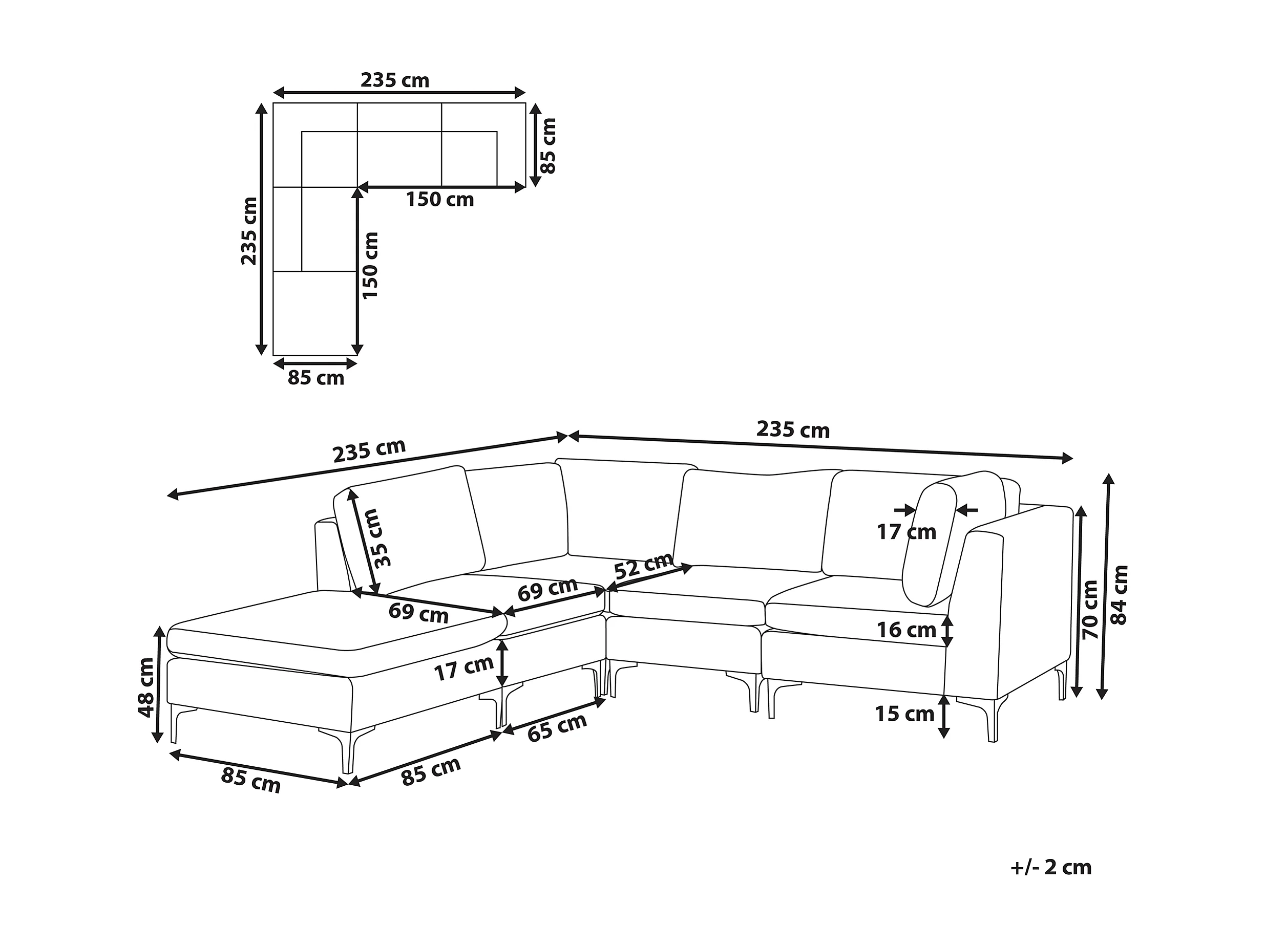 Canapé d'Angle Modulable - Evja - Côté Droit, 4 Modules et Pouf, en Velours, Gris