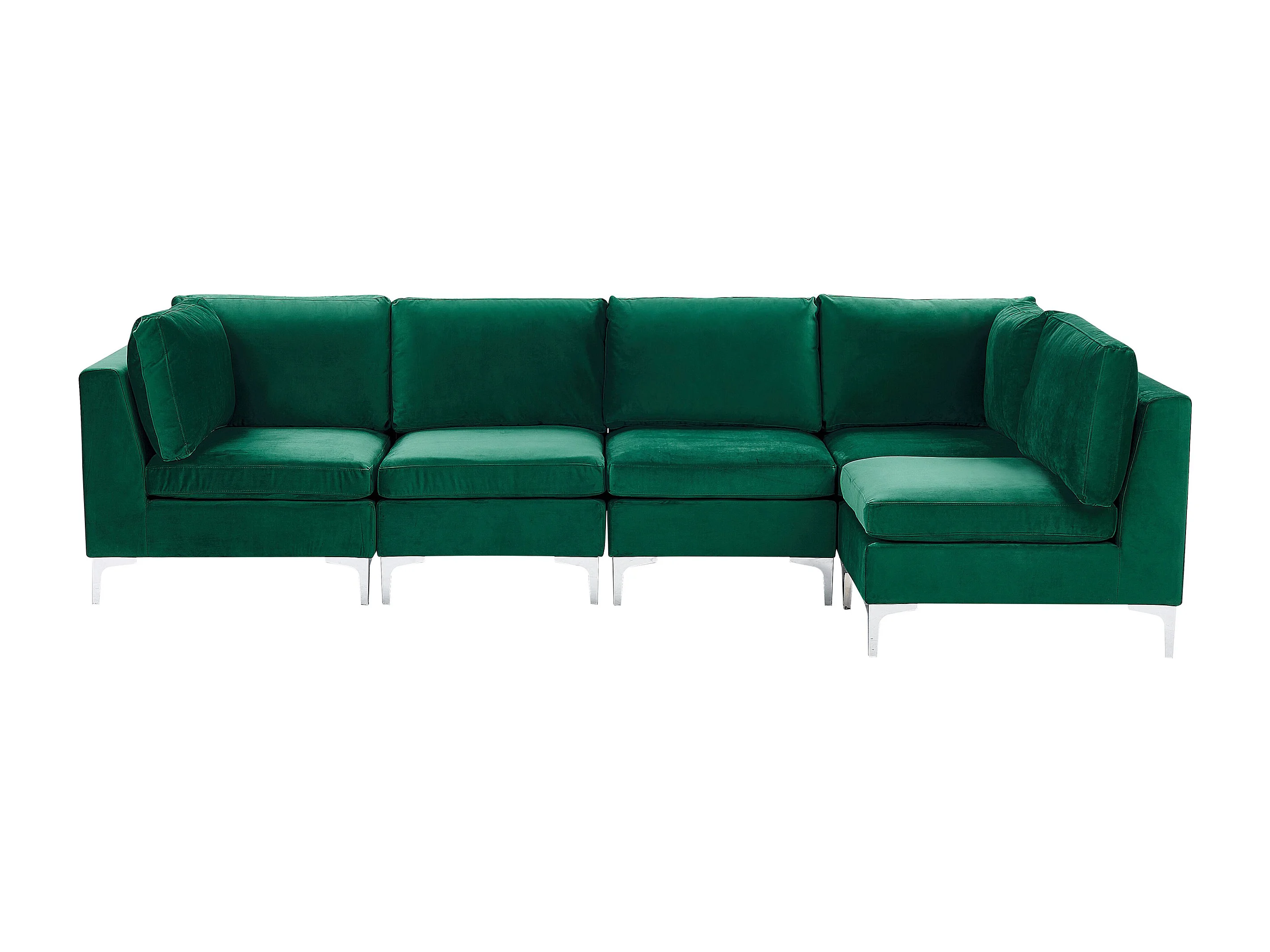 Canapé d'Angle Modulable - Evja - Côté Gauche, 5 Modules, en Velours, Vert