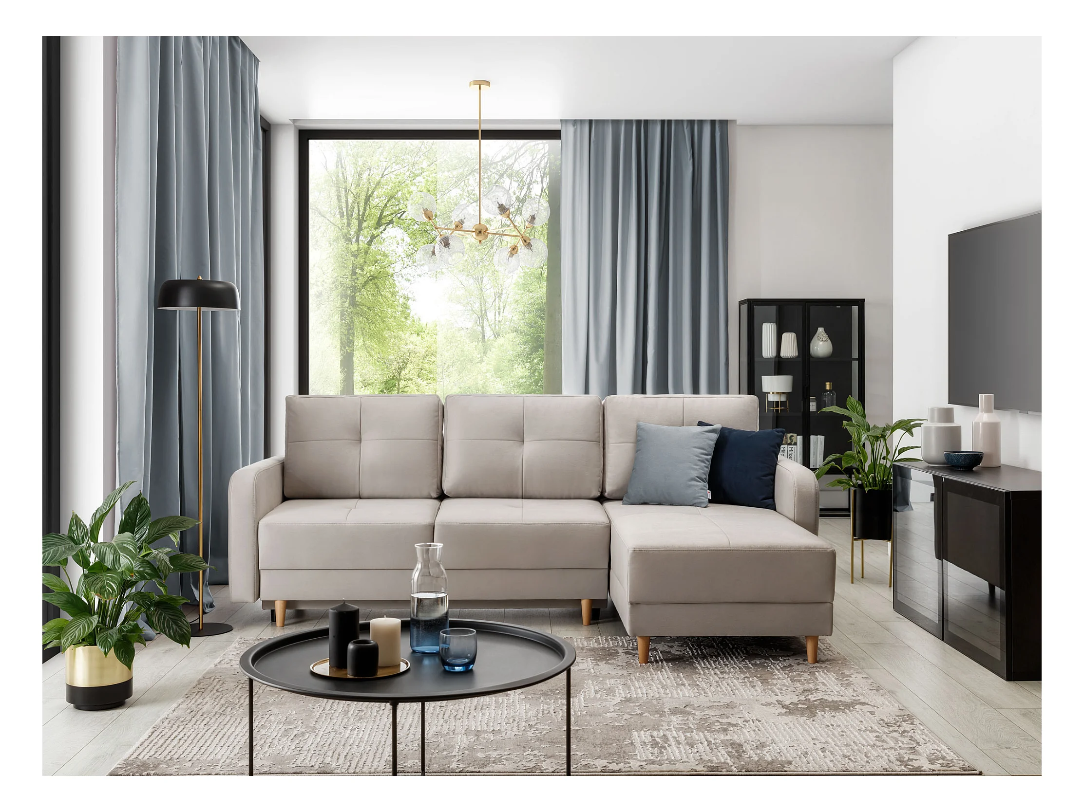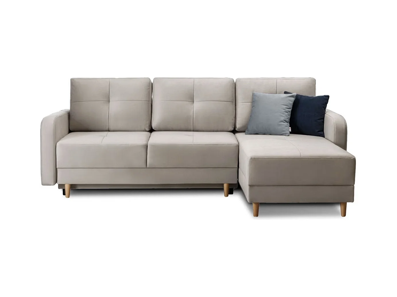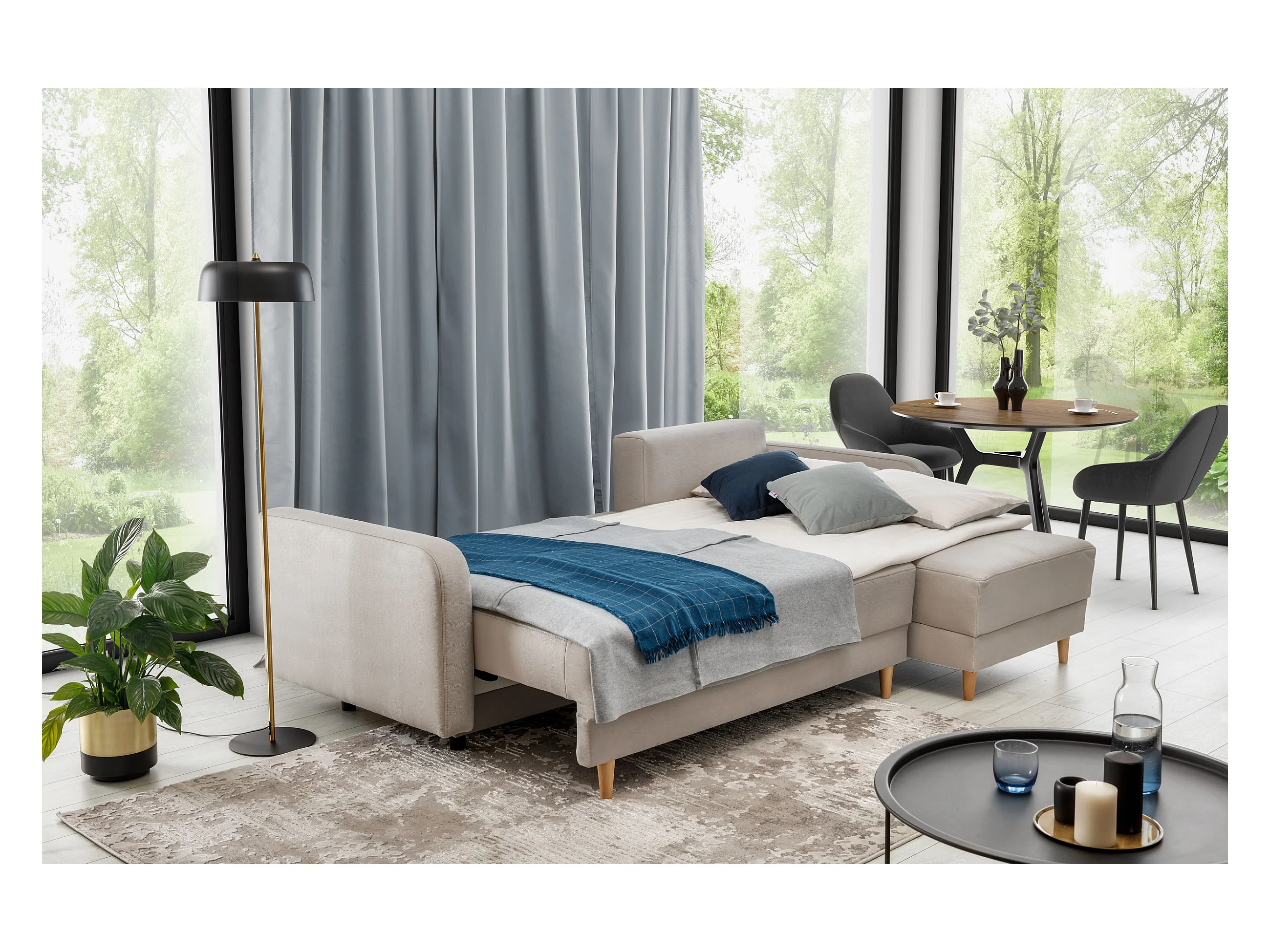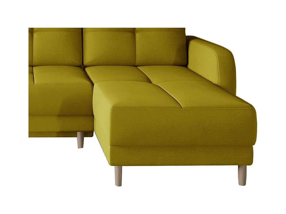 Canapé d'angle convertible et réversible tissu KINDO - Pieds bois clair-Jaune olive