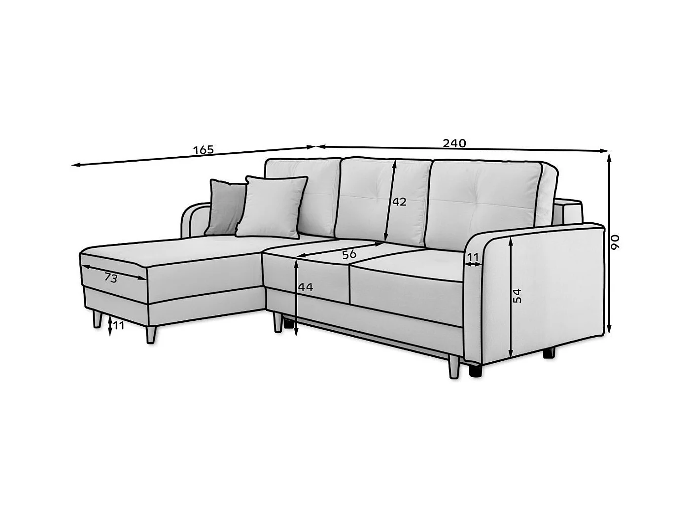 Canapé angle réversible Scandinave tissu jaune et pieds bois clair Kindo 240cm