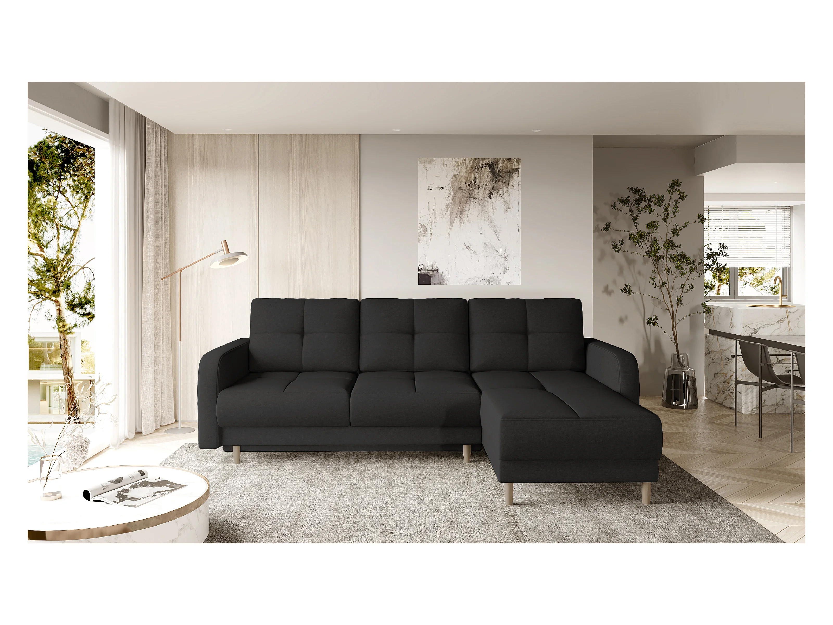 Canapé d'angle convertible et réversible tissu KINDO - Pieds bois clair-Noir